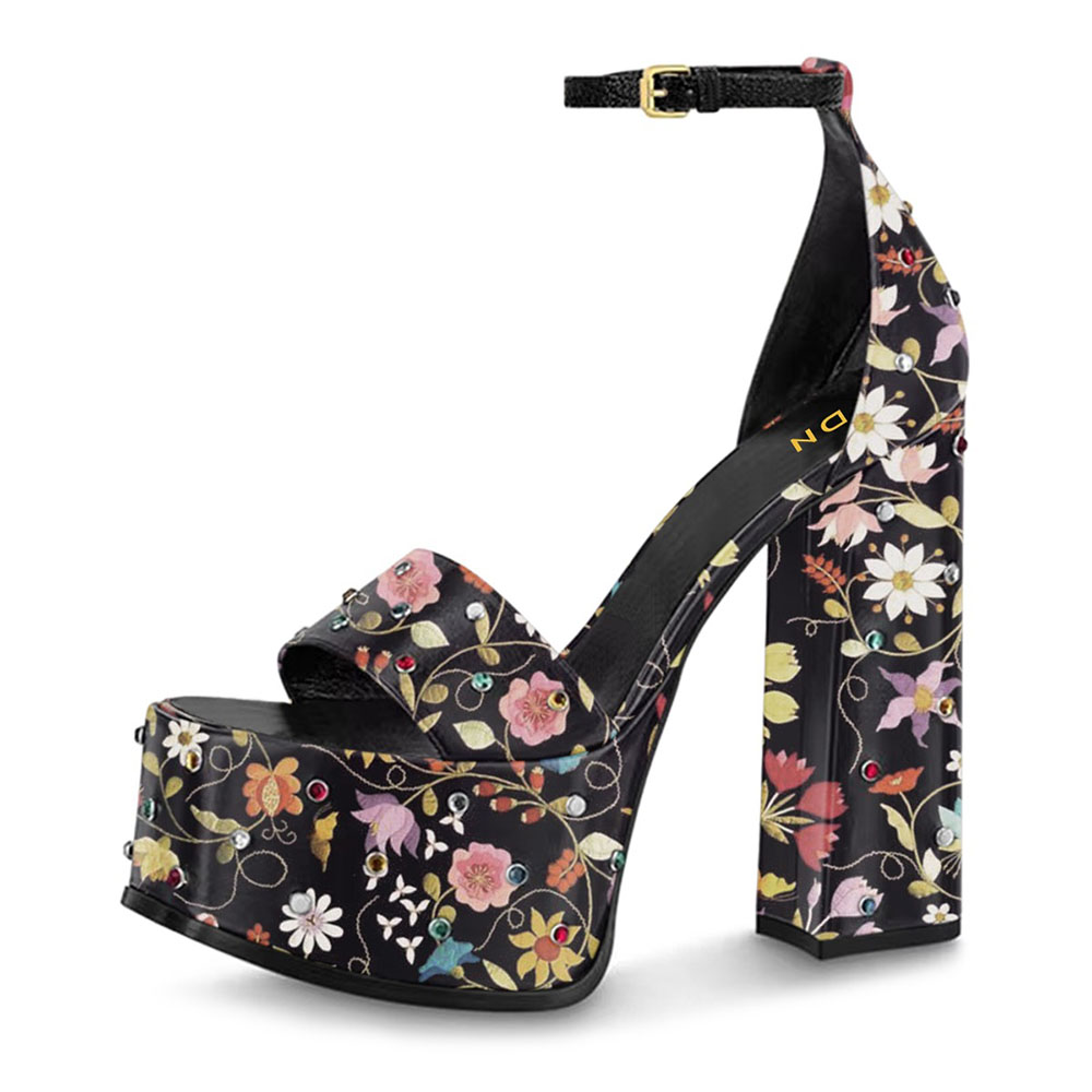 • Special Designs: The open-toe platform sandals feature multicolor rhinestones and a beautiful flower print.