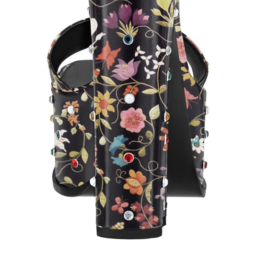 Multicolor Open-Toe Flower Print Rhinestone Platform Sandals