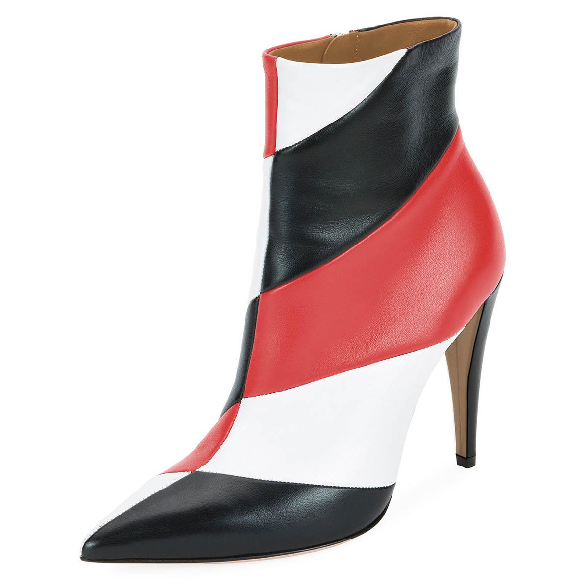 Multicolor Patchwork Pointed Toe Stiletto Heeled Ankle Boots