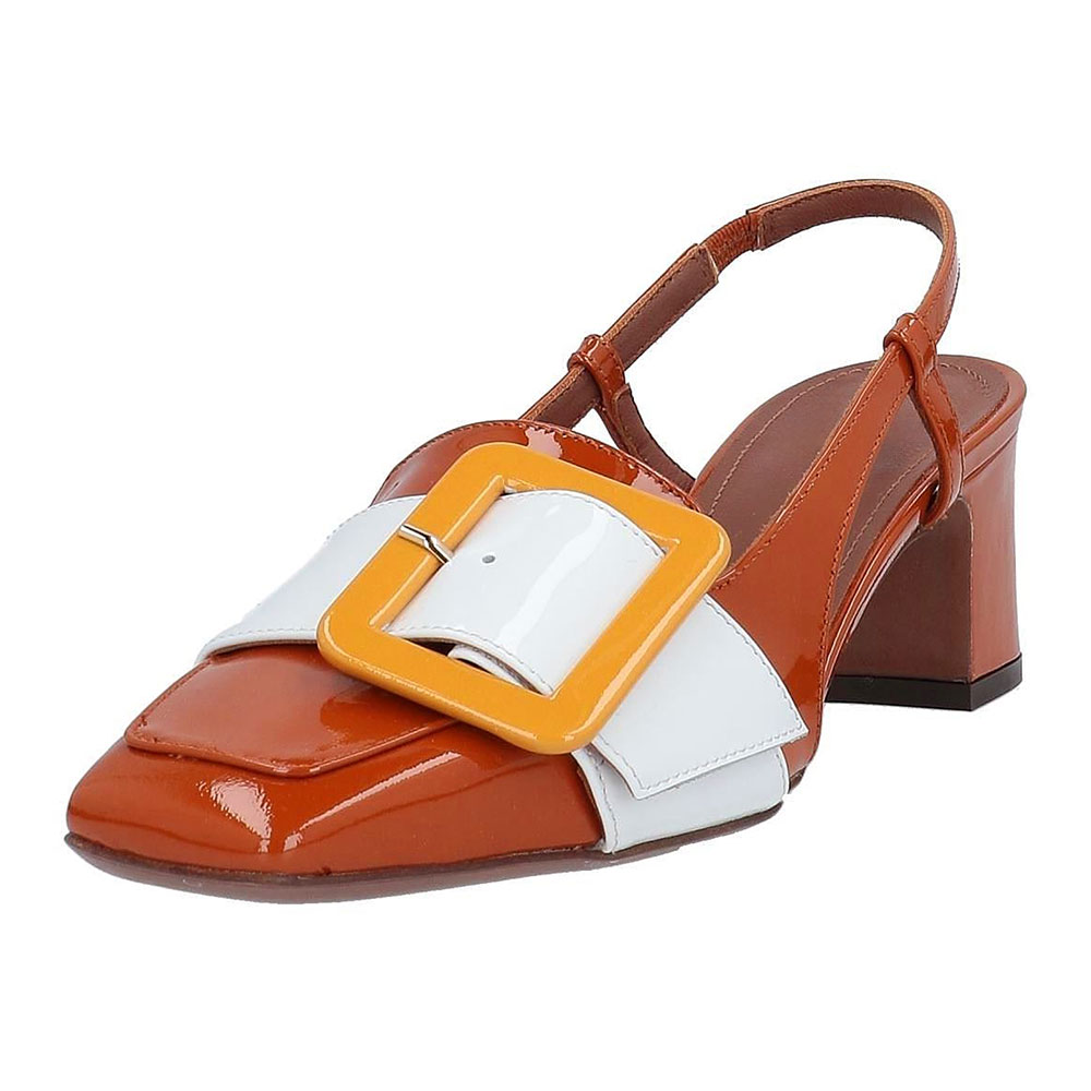 Multicolor Patent Buckle Square Toe Block Heel Slingback Shoes