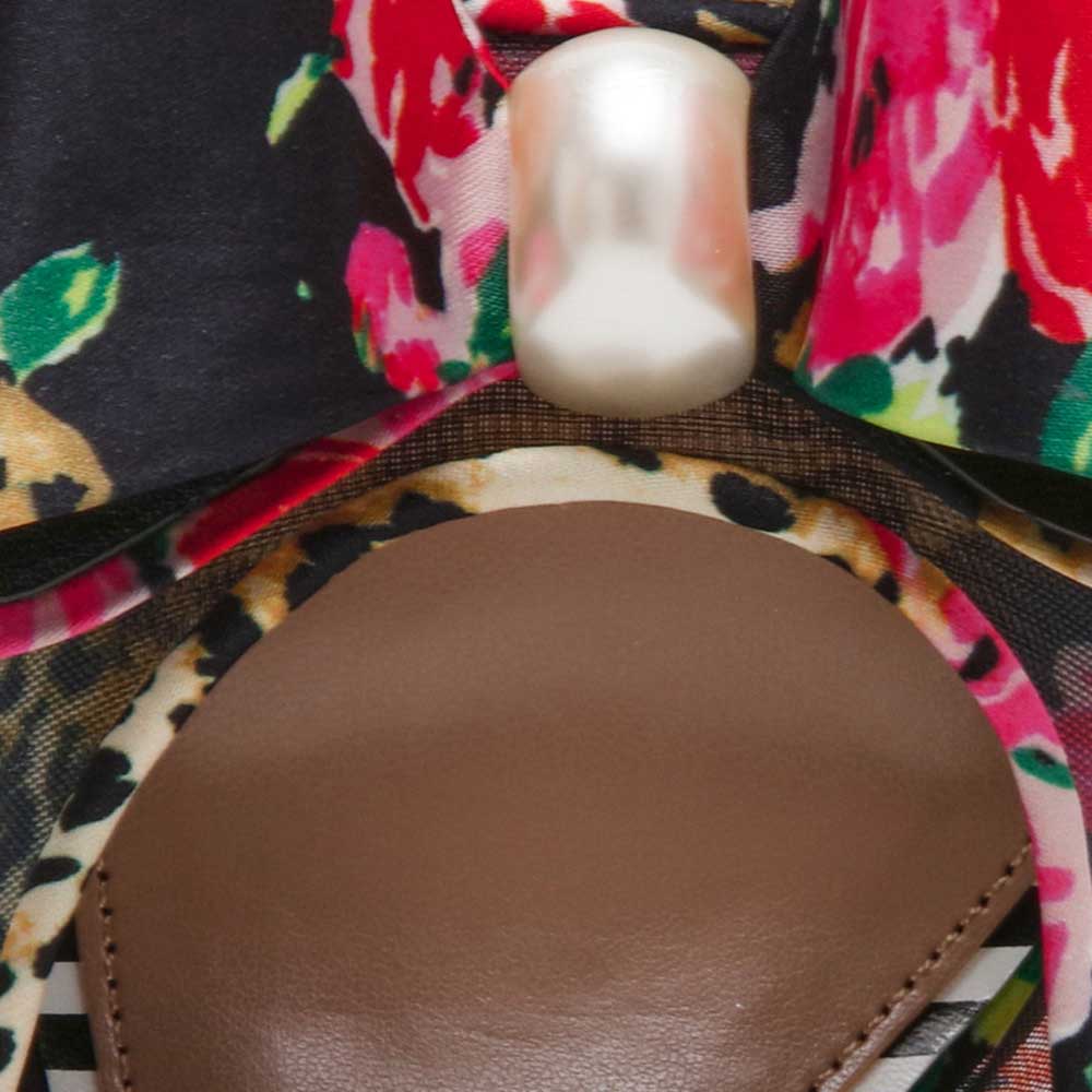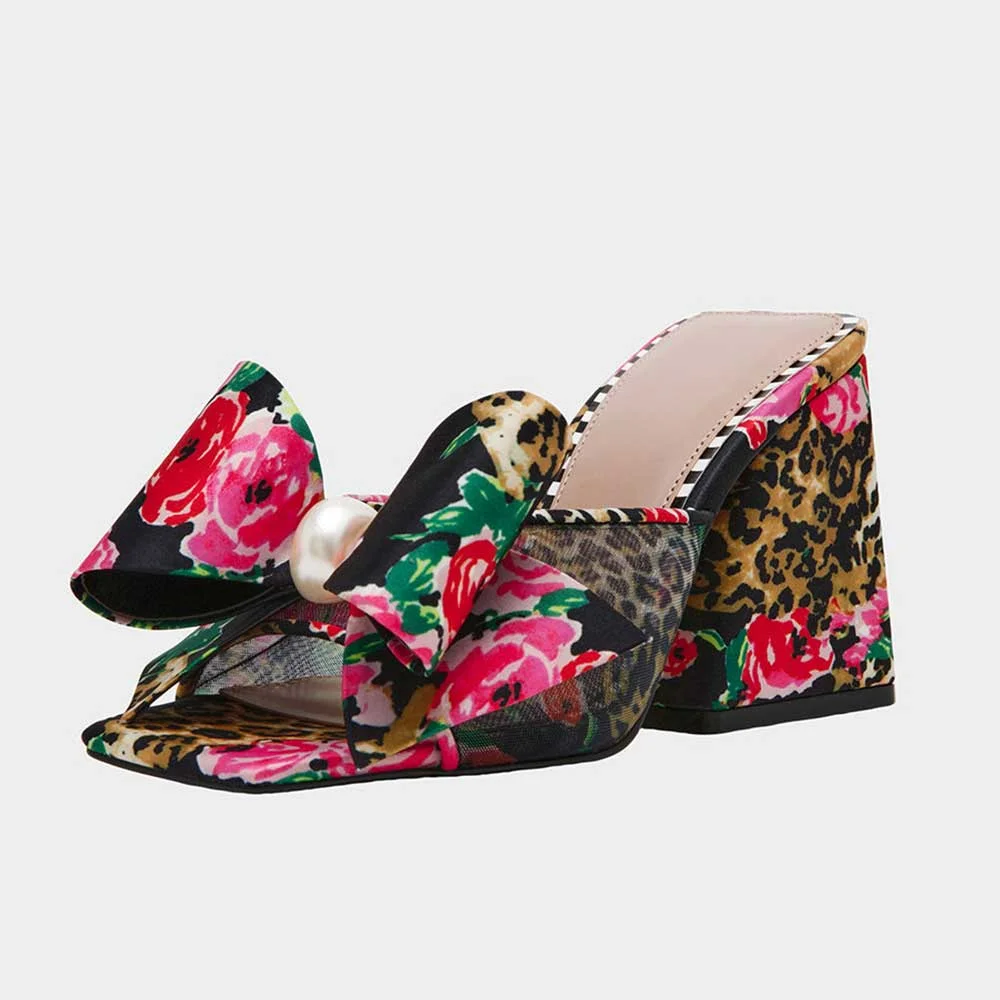 Multicolor Square Toe Chunky Heel Floral Leopard Print Bow Mules Shoes