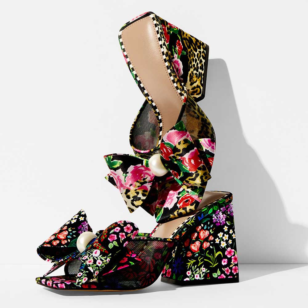• Special Designs: The heeled mules feature a square toe, a floral and leopard print, a bow decor.