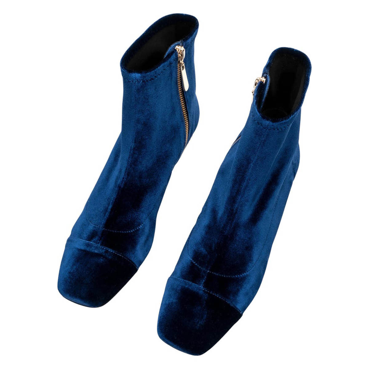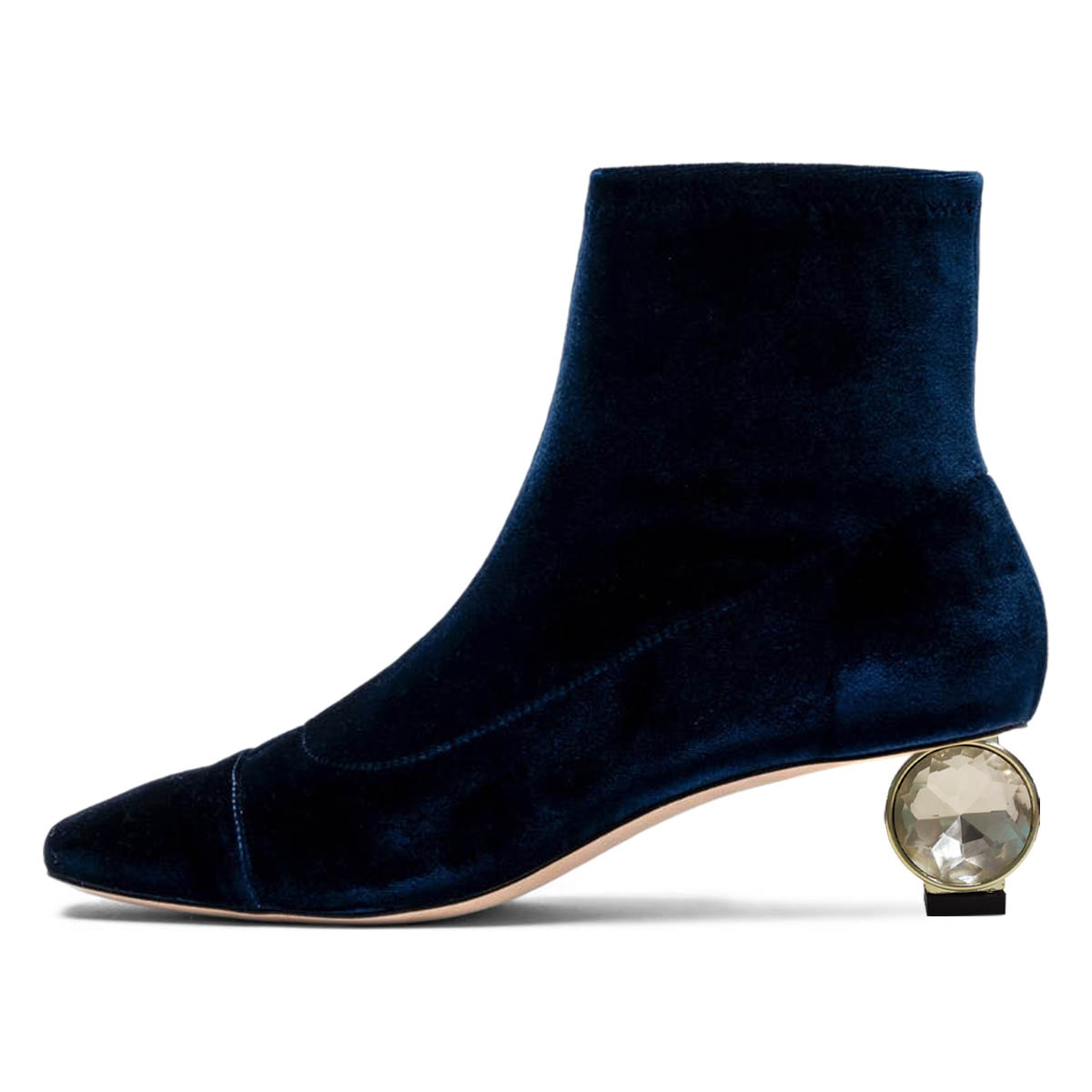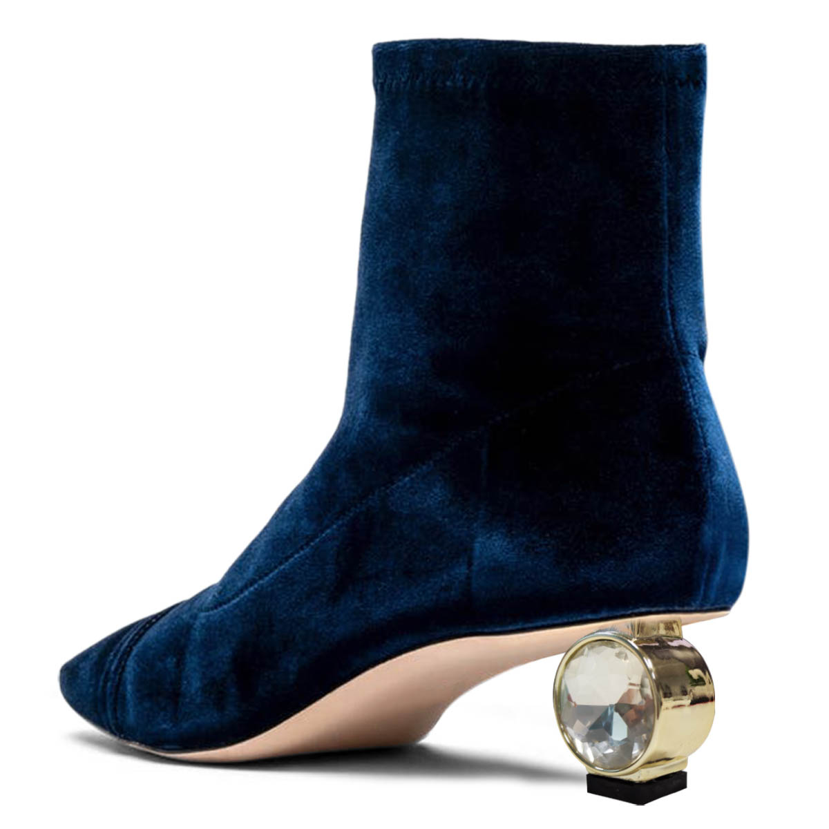 Navy Crystal Sculptural Heel Velvet Square Toe Short Boots for Women