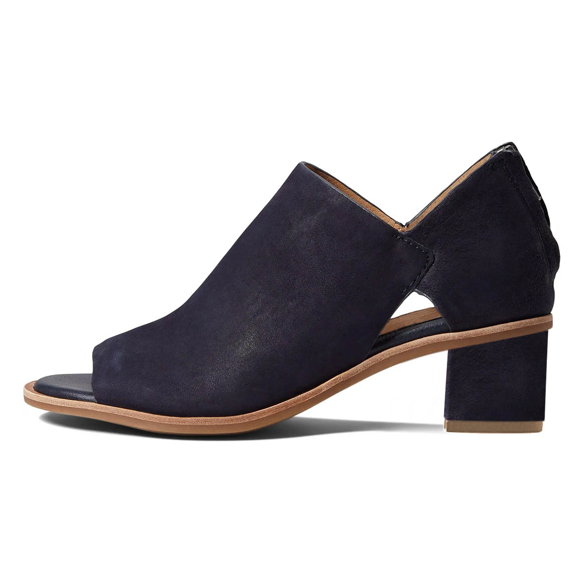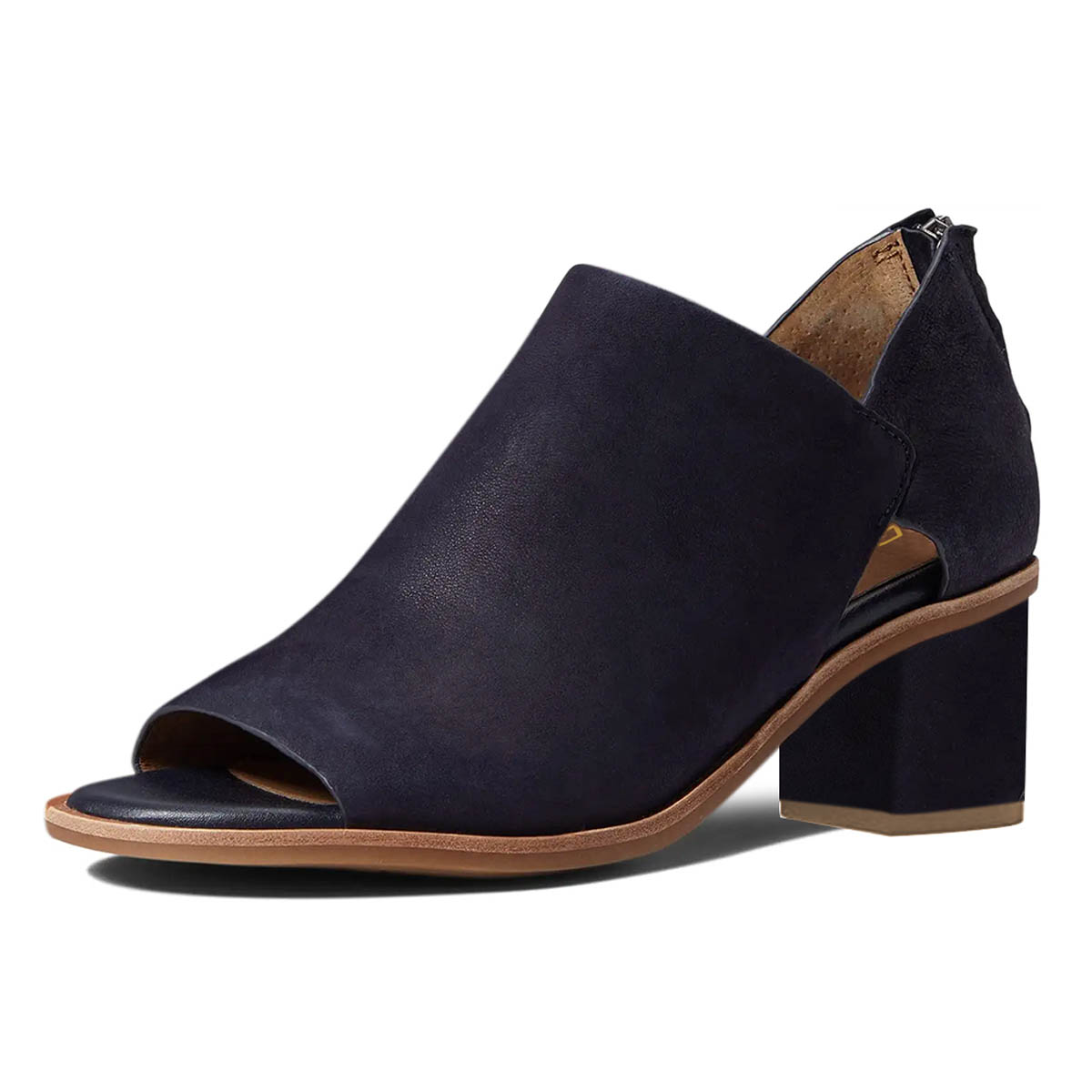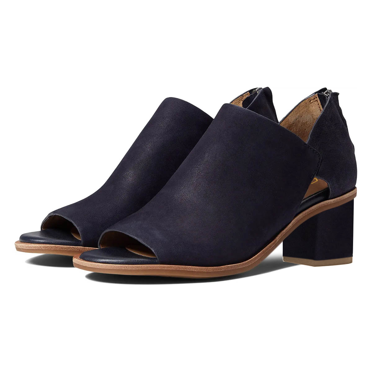 Navy Peep Toe Block Heel Cut-Out Booties for Women with Back Zipper