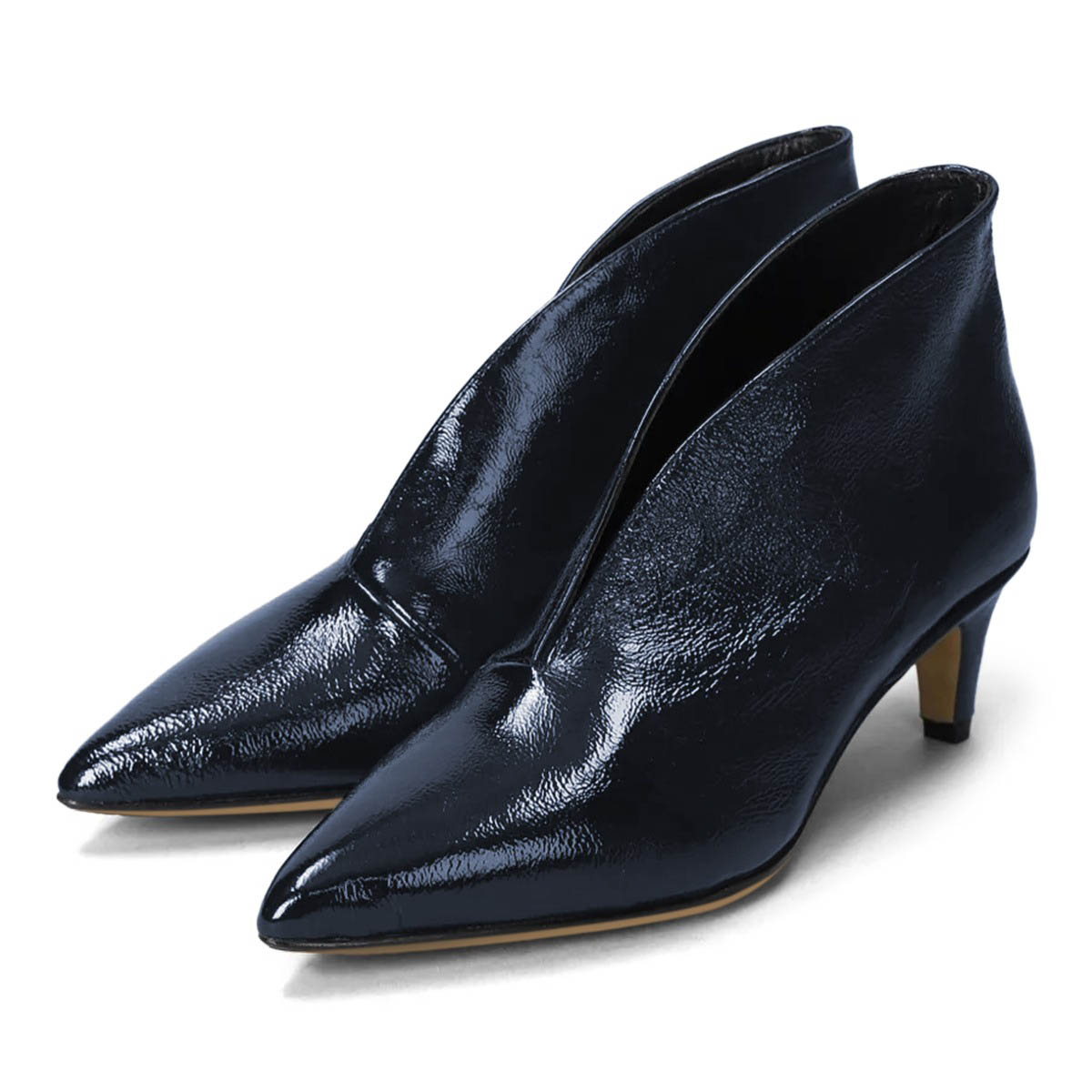Navy Pointed Toe Low Kitten Heel Slip On Ankle Boots for Women