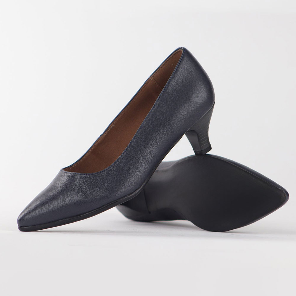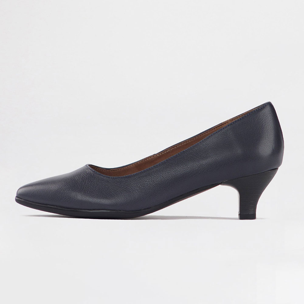 Navy Pointed Toe Slip-On Kitten Heel Simple Pumps for Women