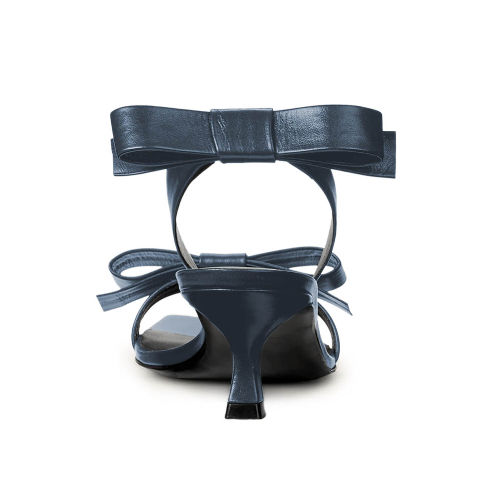 Navy Square Toe Bow Slip-On Women's Sandals with Kitten Heel