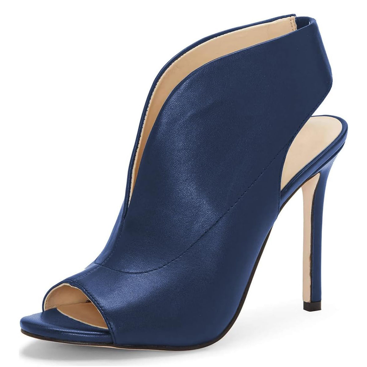 Navy Vegan Leather Peep Toe Slingback Stiletto Heels Sandals