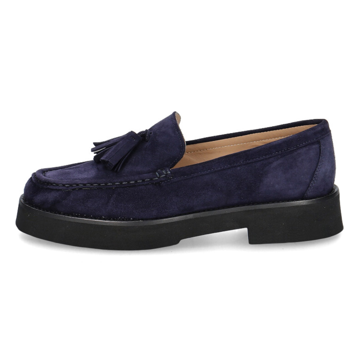 Navy Vegan Suede Slip-On Round Toe Platform Loafers with Fringe
