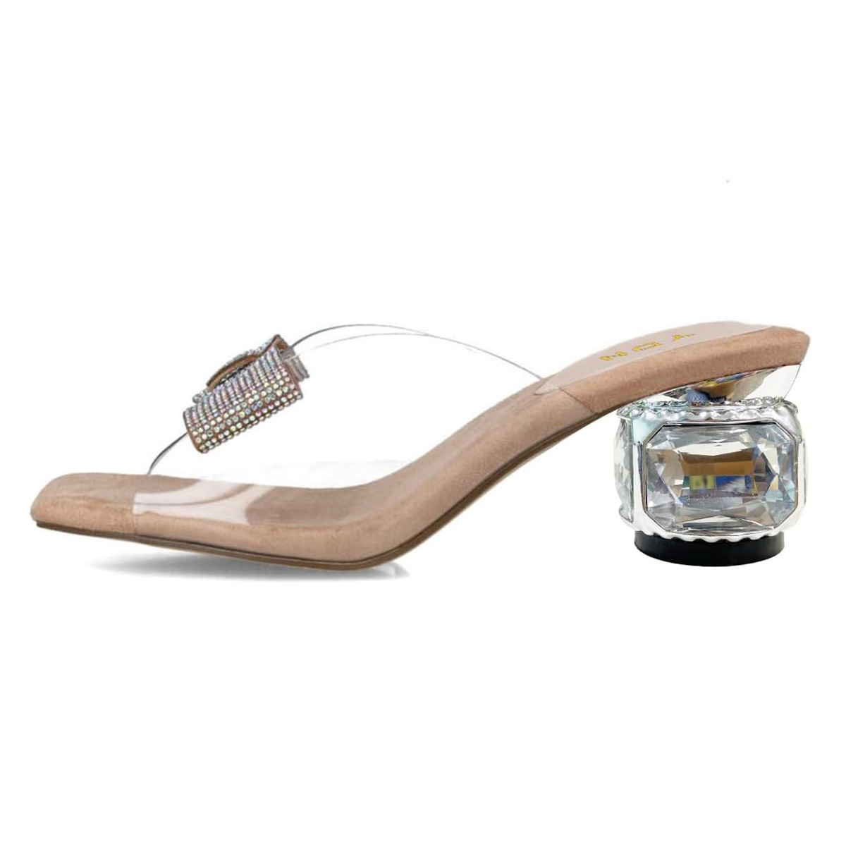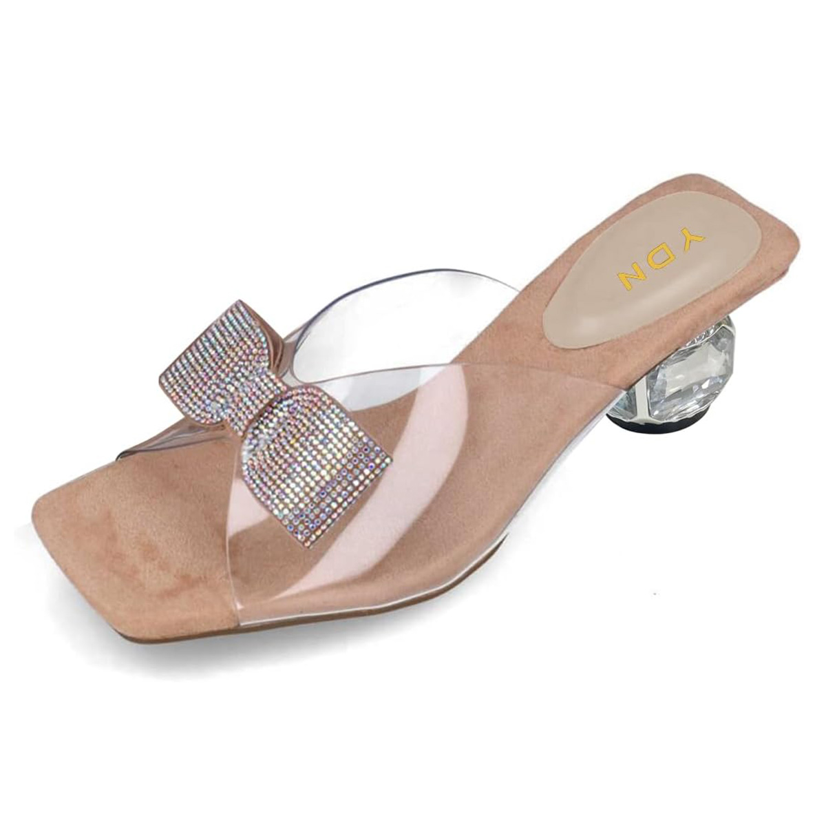 • Special Designs: YDN's transparent PVC slip-on mule sandals feature a stylish clear block heel design and rhinestone bow embellishment.