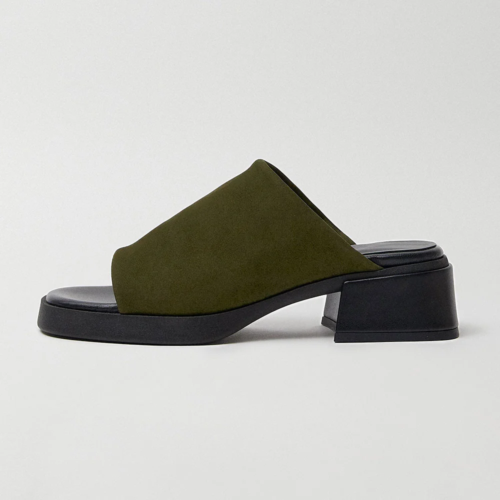 Olive Square Toe Platform Women's Mules Shoes with Chunky Heel