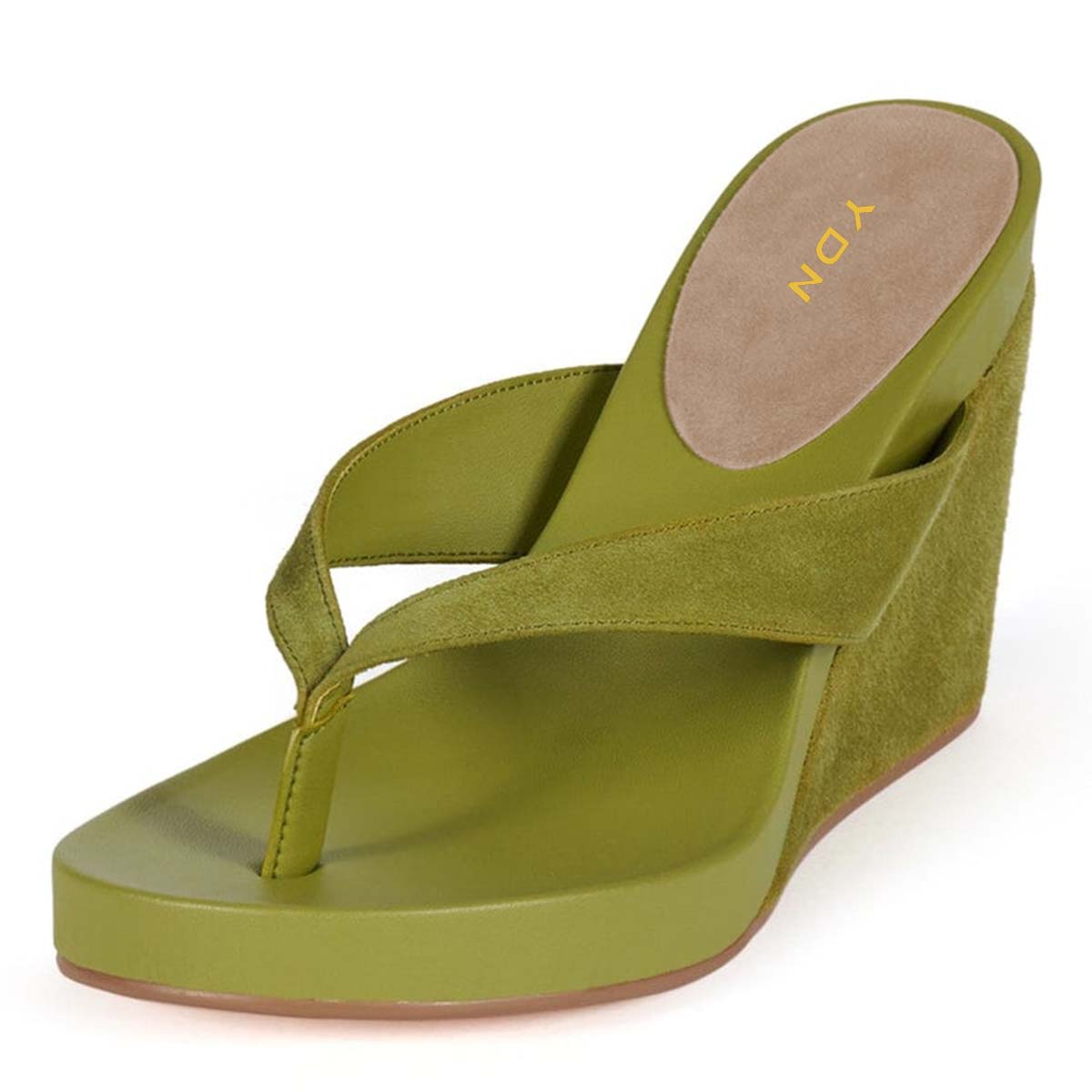 Olive Vegan Suede Open Toe Platform Flip Flops Wedge Sandals