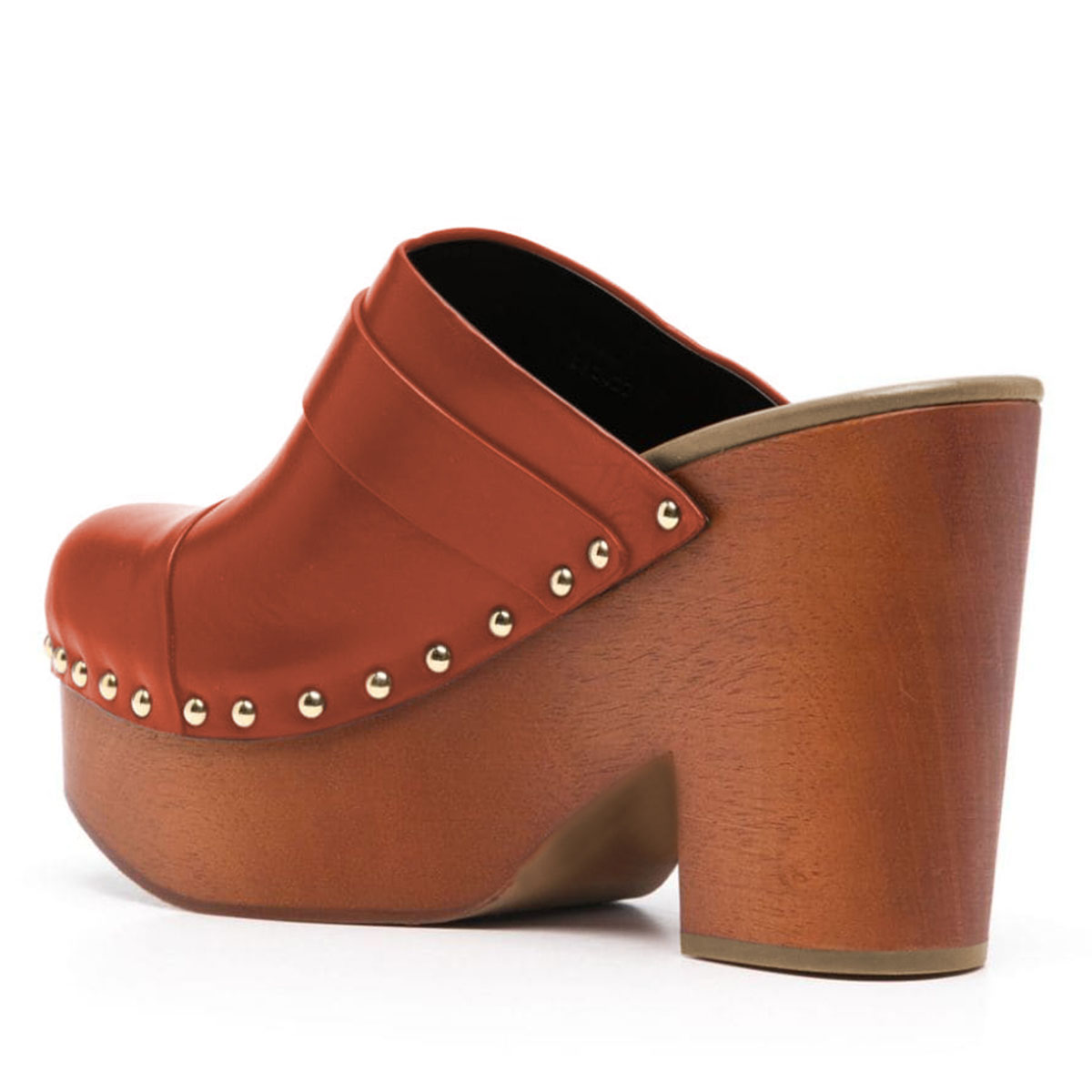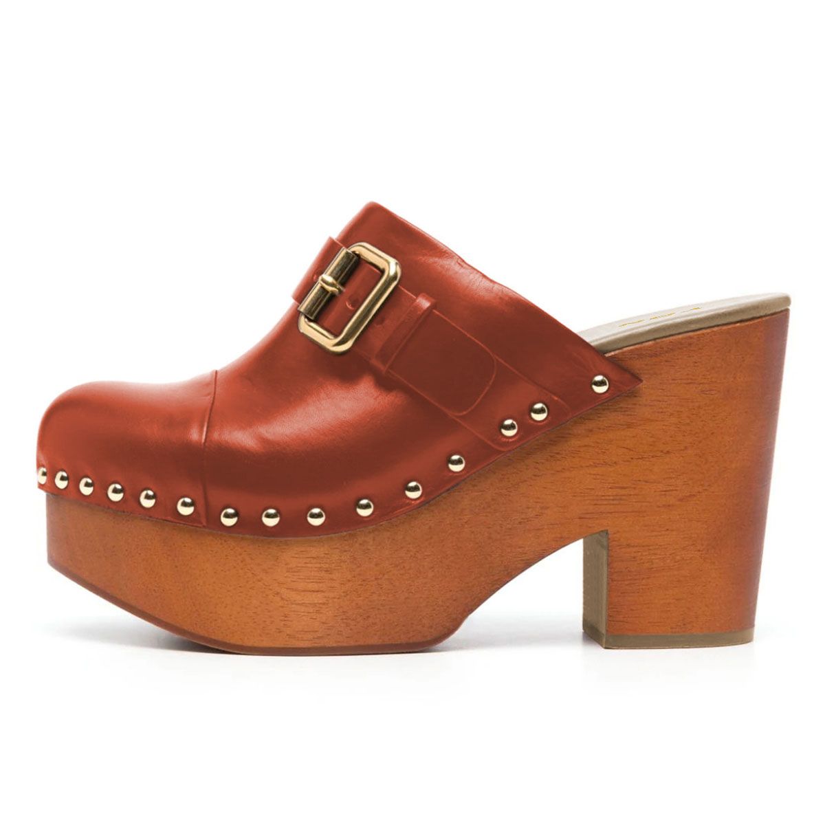Special Designs: The orange mules shoes feature studded design with a buckle strap.