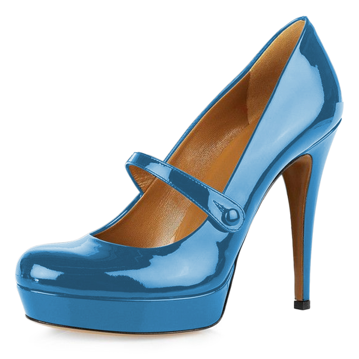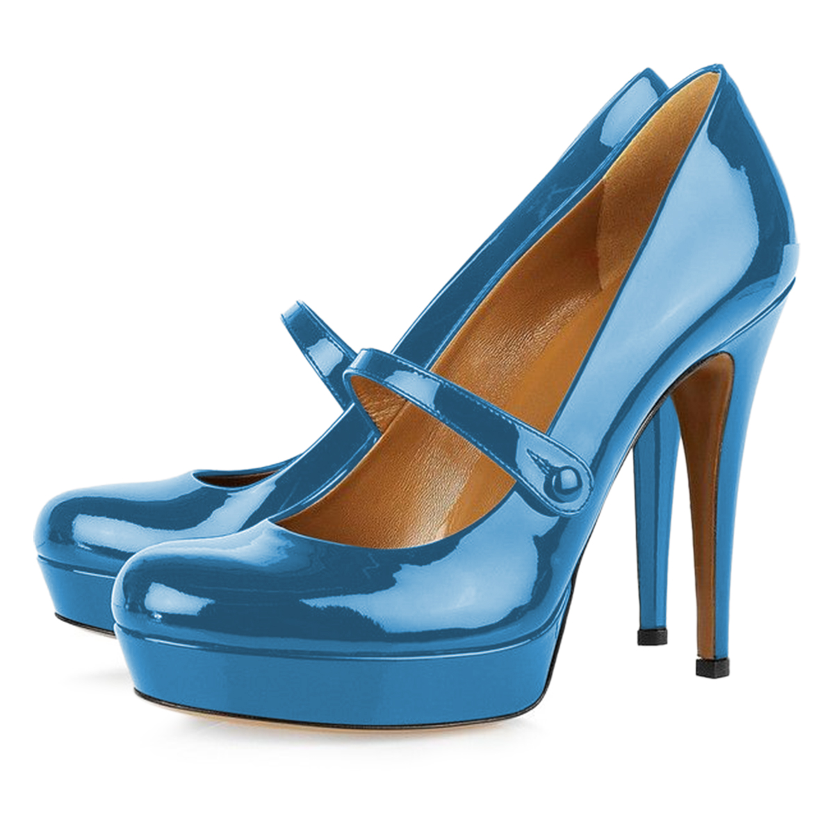 Patent Leather Buckle Strap Platform Mary Jane High Heels in Blue
