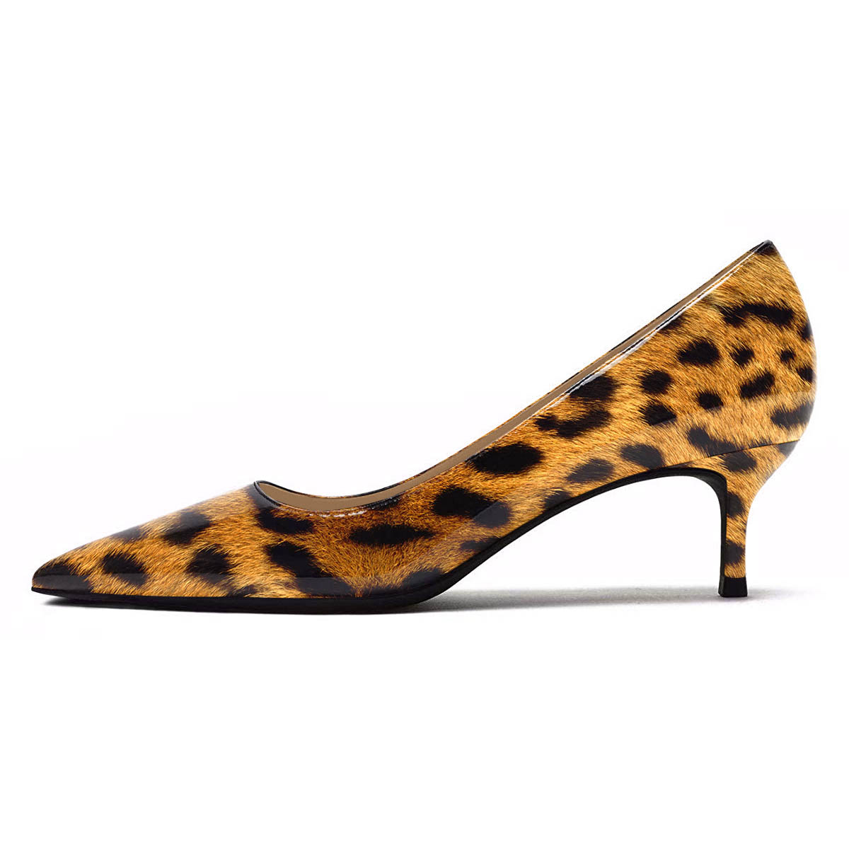 Patent Leather Leopard Print Pointed Toe Kitten Heel Pumps Shoes