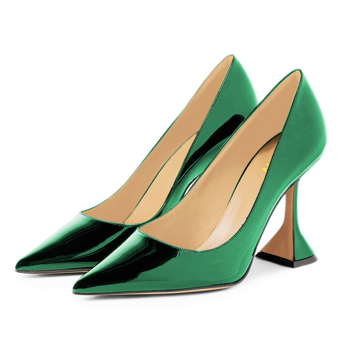 Patent Leather Metallic Touch Pointed Enchanting High Heels in Green