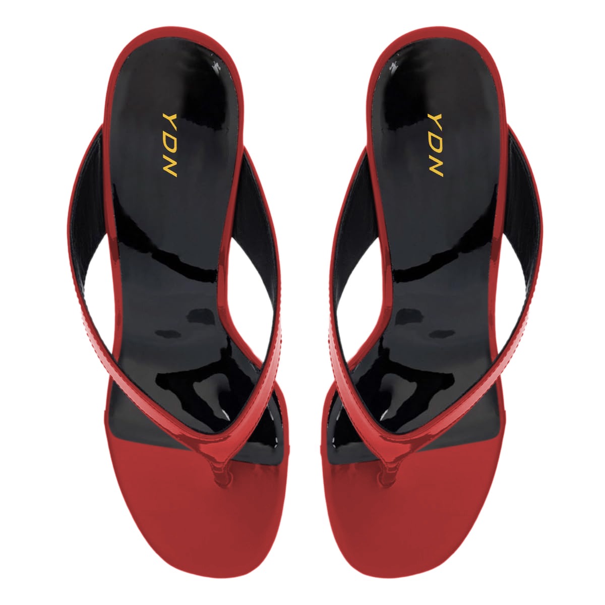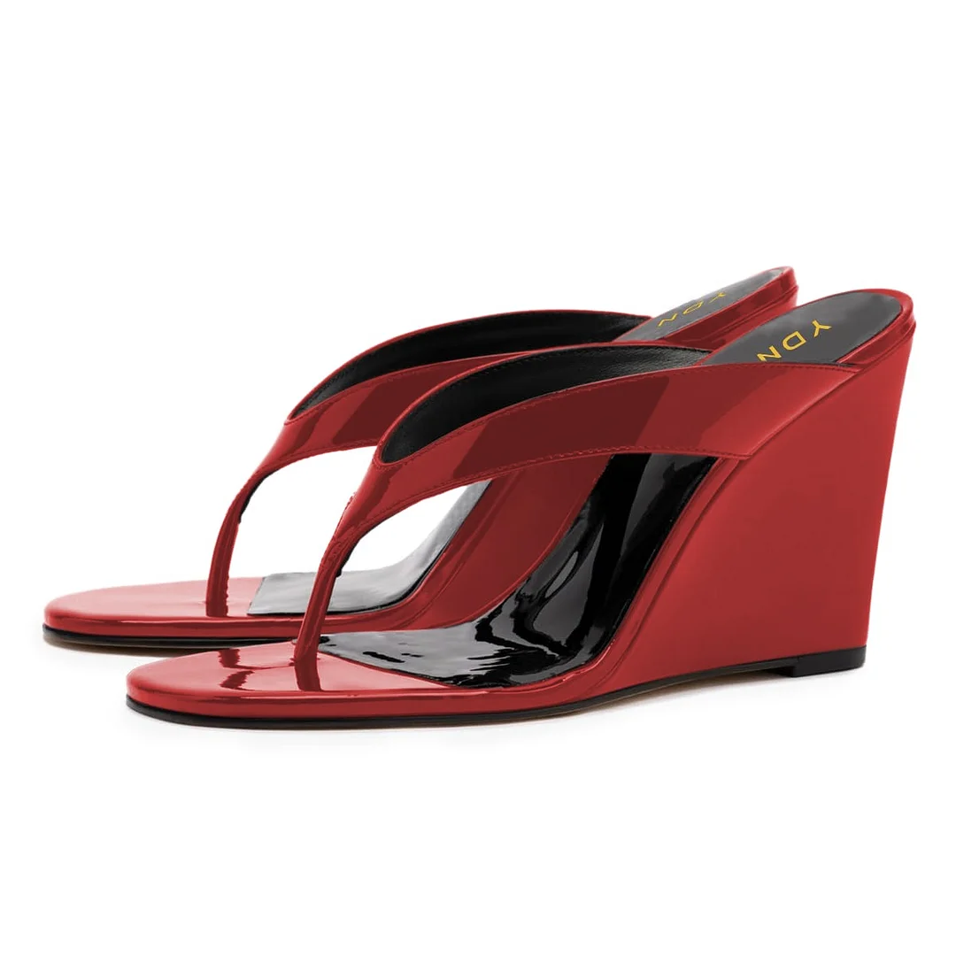 Patent Leather Open Toe Slip-On Wedge Sandals for Women in Red