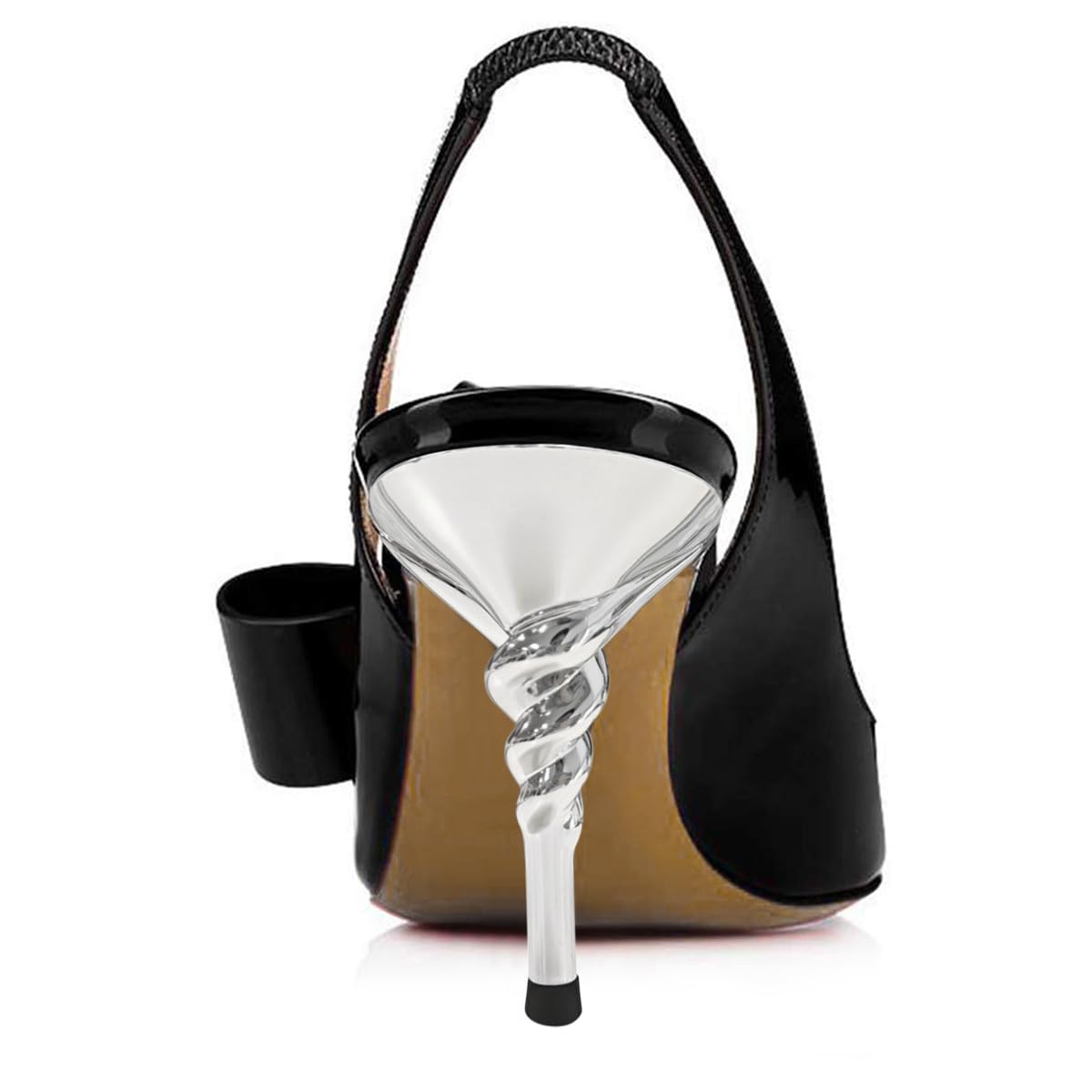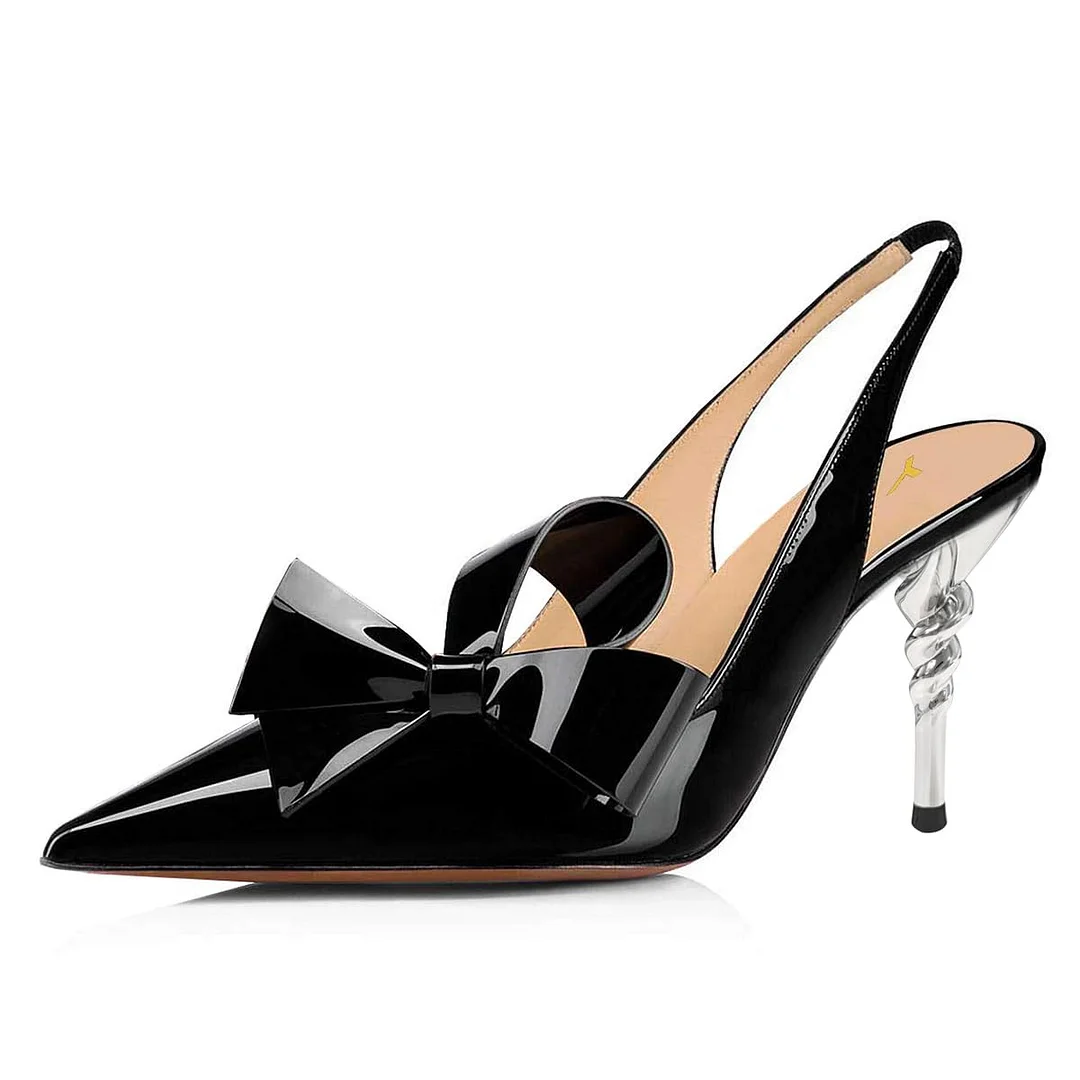 Patent Leather Pointed Toe Bow Decor Slingback Black Pumps