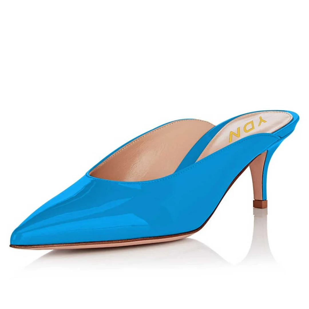 Patent Leather Pointed Toe Low Heel Mule Shoes for Women in Blue