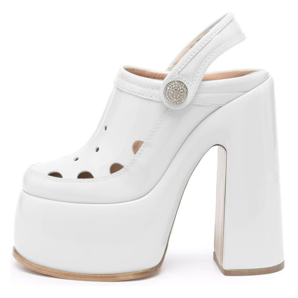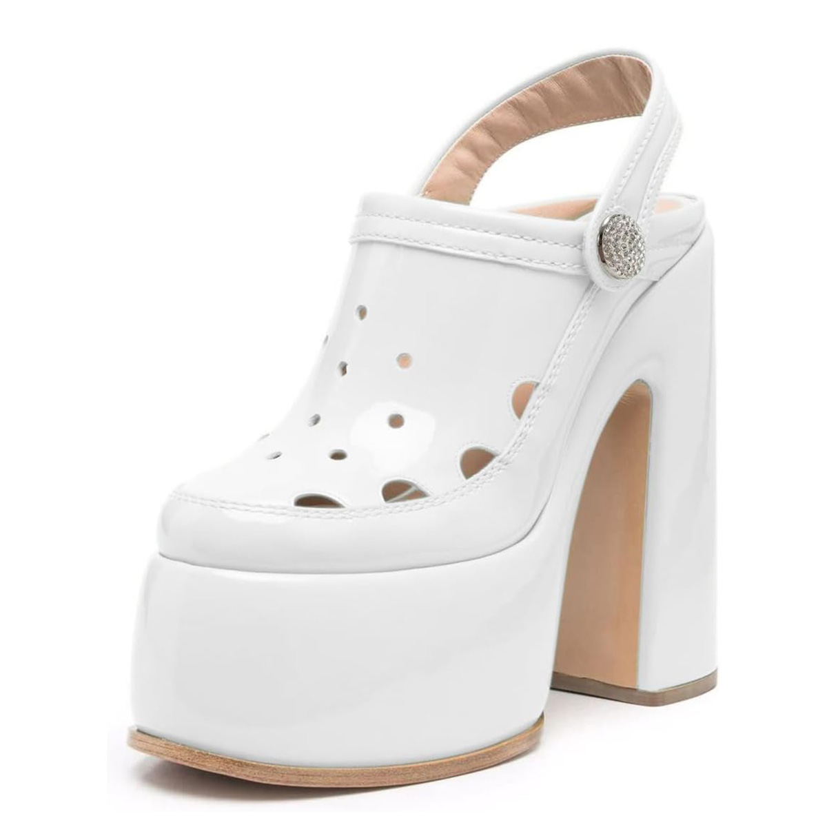 Patent Leather Slingback Rhinestone Platform Heel Ivory Mary Janes