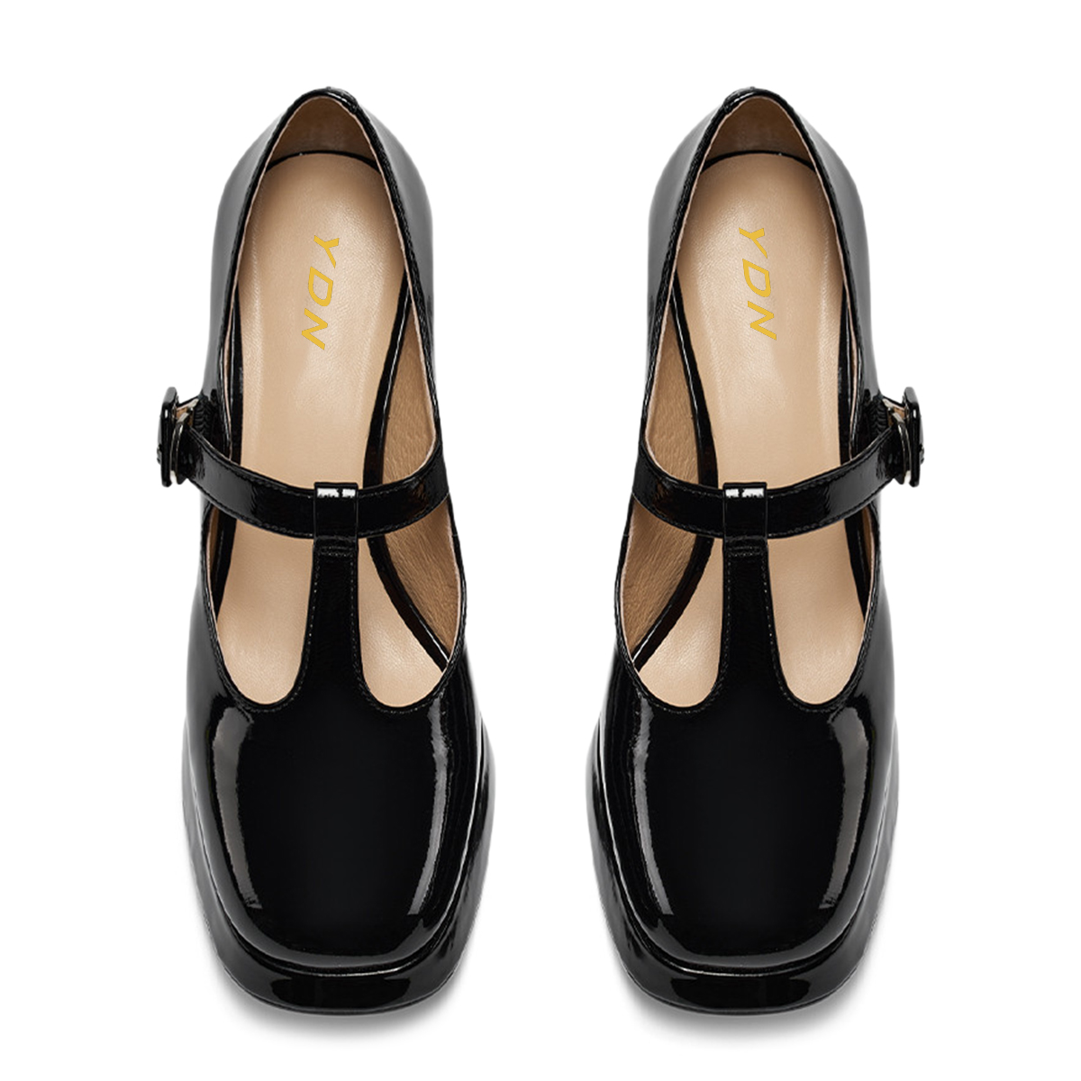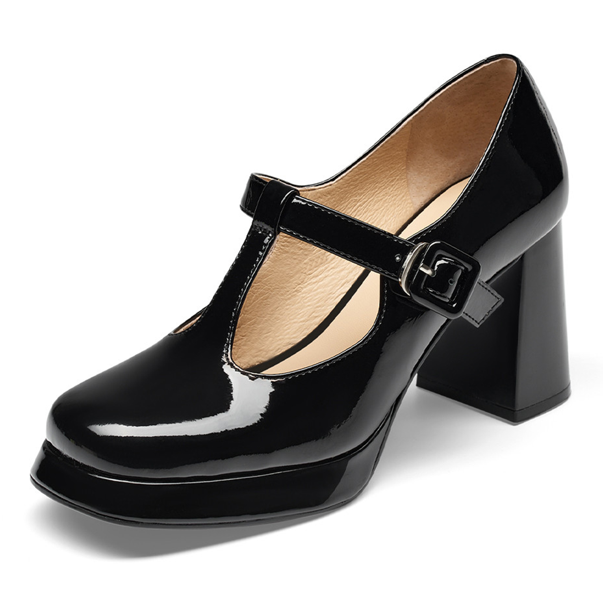 Patent Leather Square Toe Block Heel Platform Mary Janes in Black