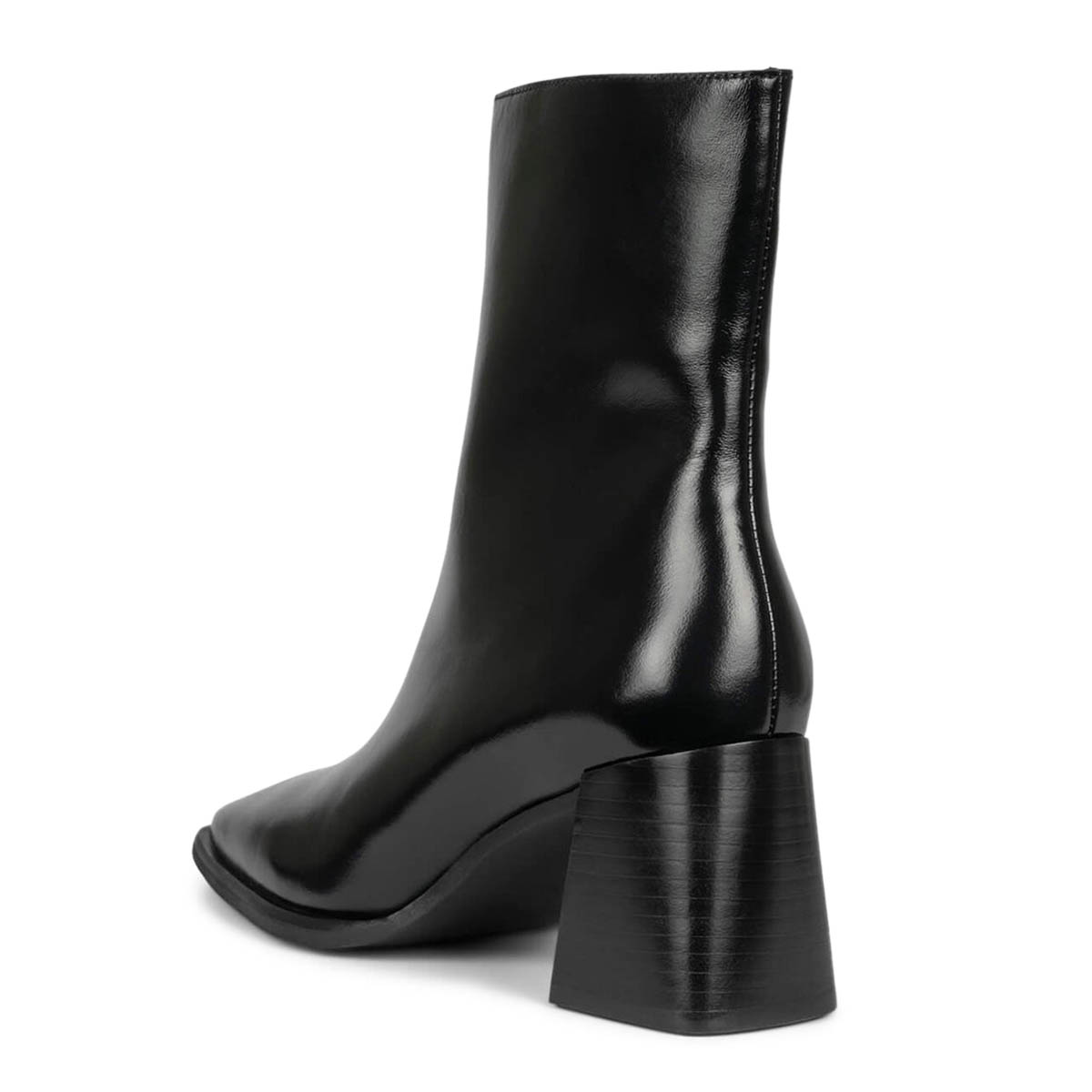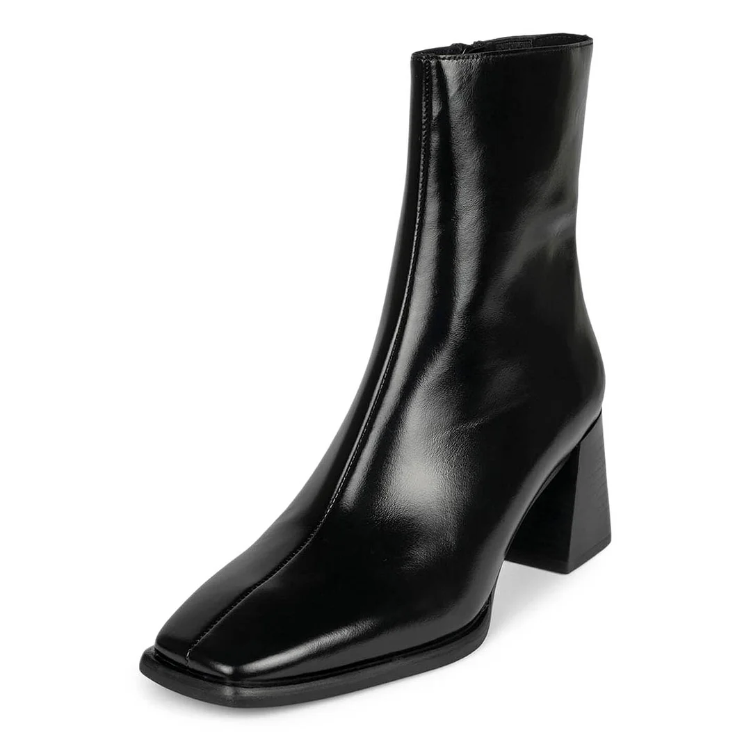 YDN Square Toe Side Zipper Short Chunky Heeled Boots in Black