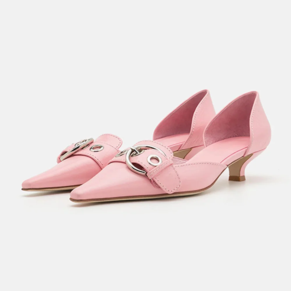 • Special Design: The pink pumps feature a pointed toe and kitten heel, with a grommet and a decorative strap accented by a silver buckle for a stylish touch.