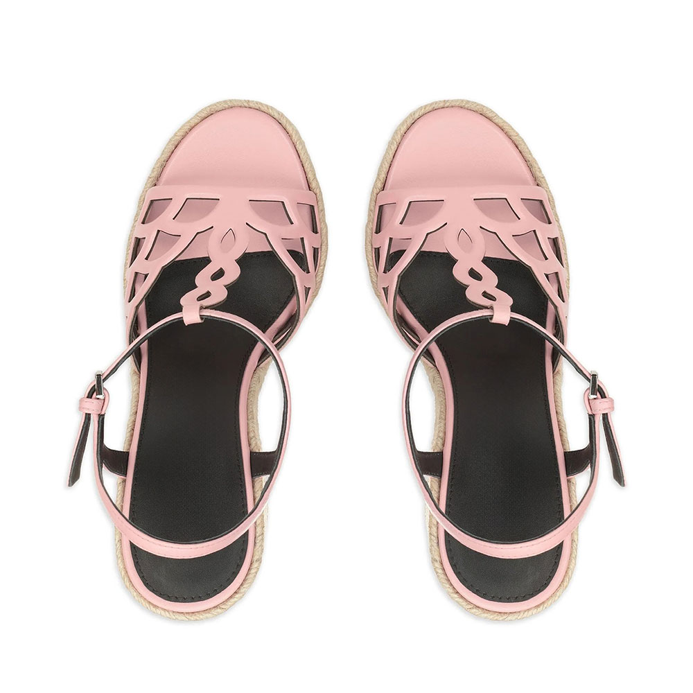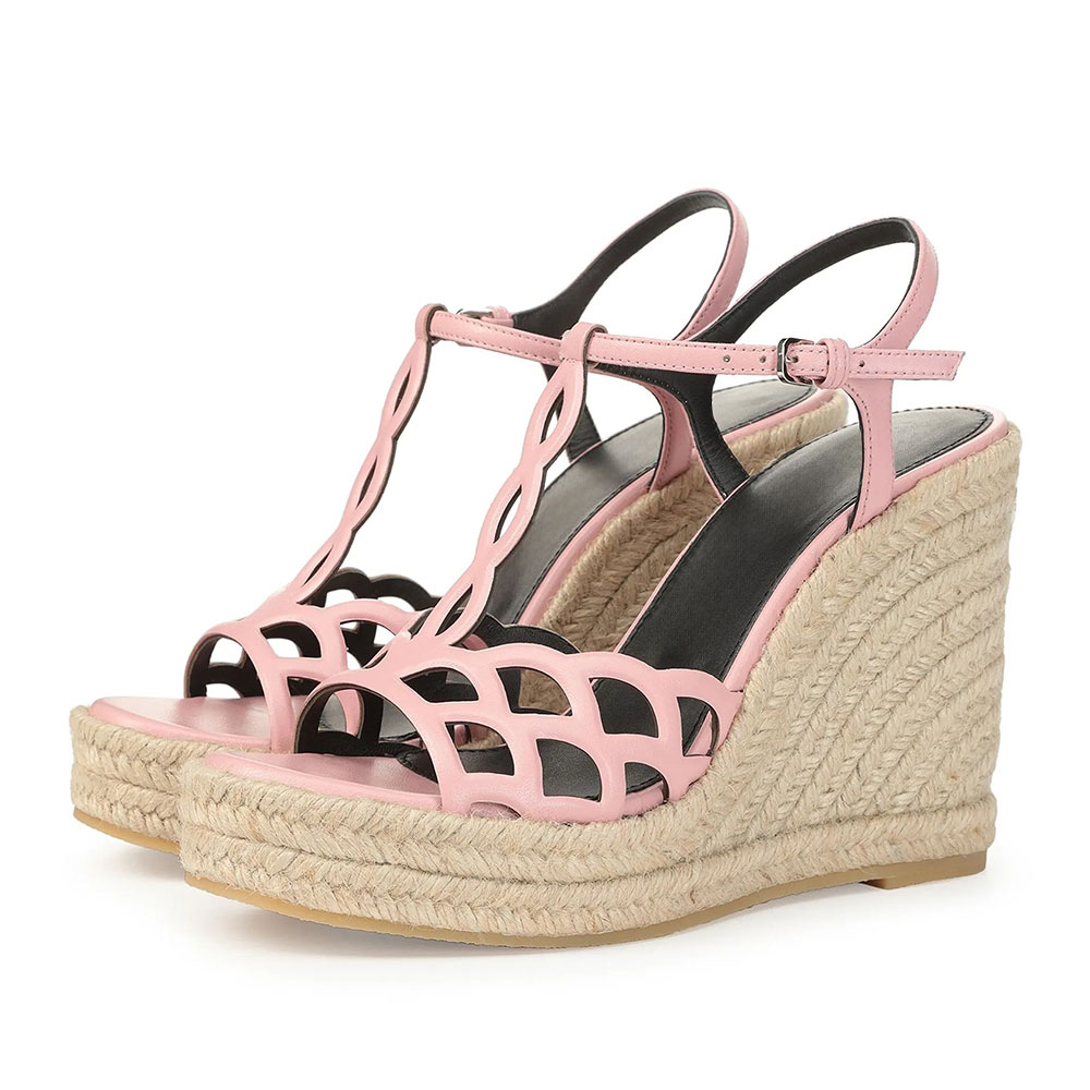 Pink Open Round Toe Platform Ankle Strap Wedge Sandals with Cut Out