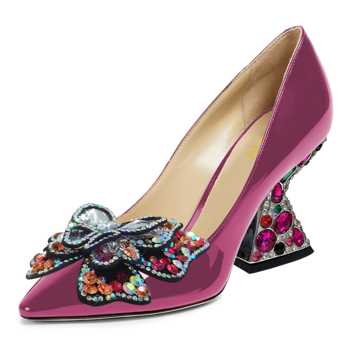 Pink Patent Leather Pointed Rhinestone Butterfly Elegant Pumps