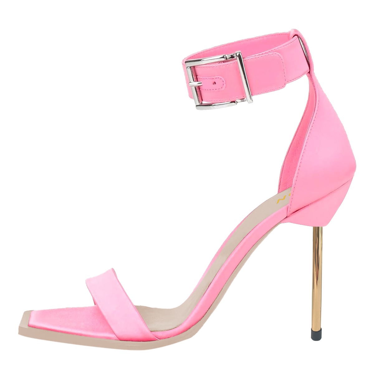 Pink Square Toe Ankle Strap Stiletto High Heels Sandals with Buckle