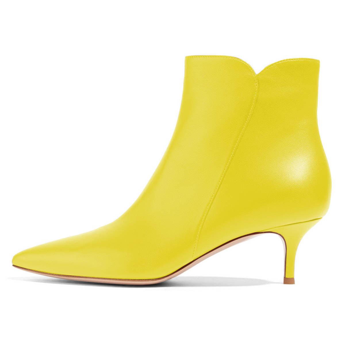 Pointed Toe Faux Leather Kitten Heel Ankle Boots in Bright Yellow