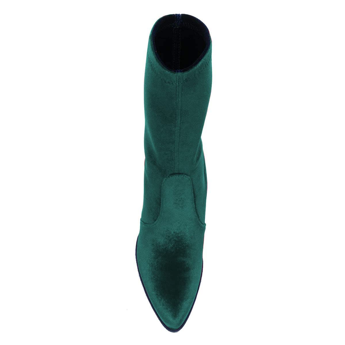 Pointed Toe Pull-On Dark Green Ankle Boots for Elegant Ladies