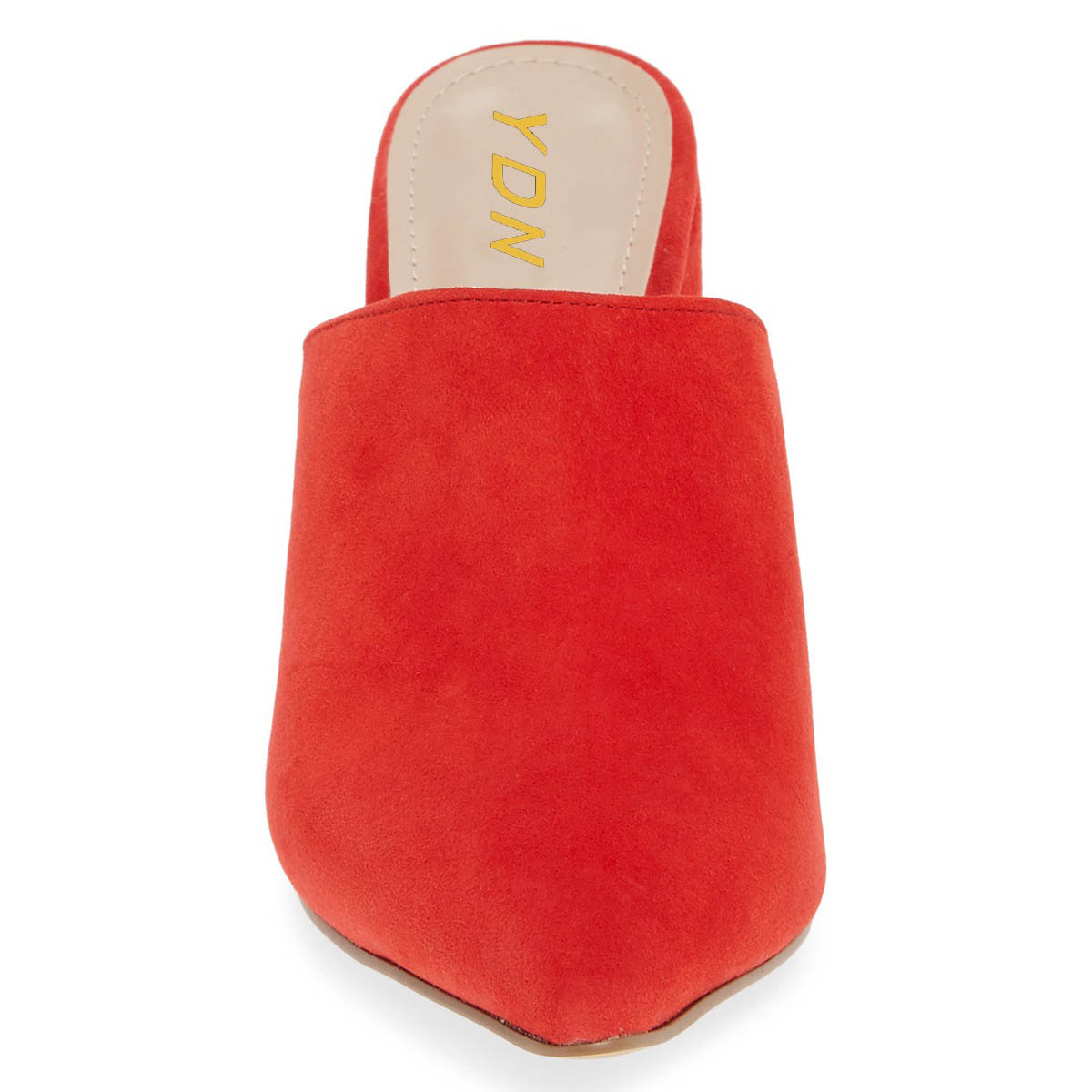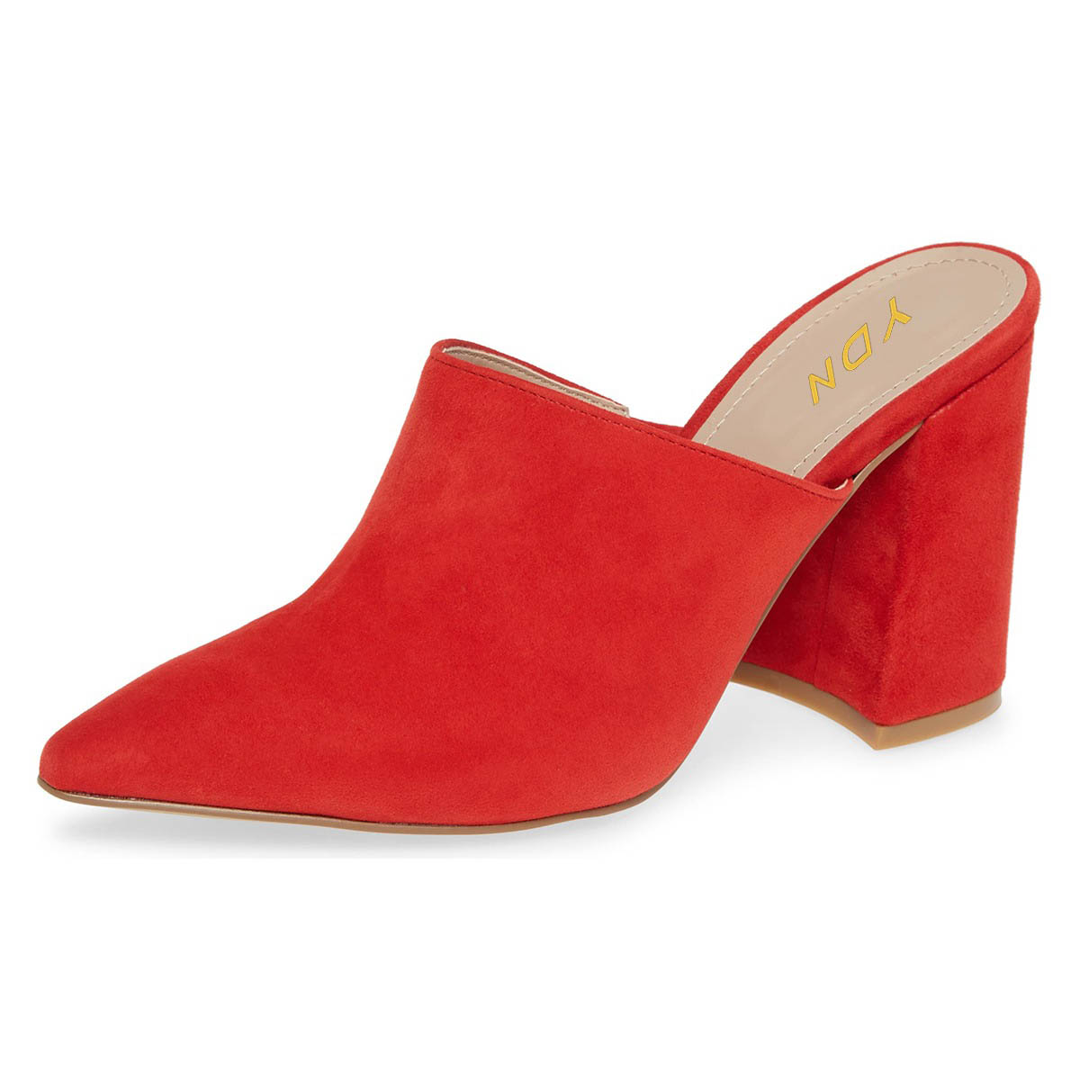 Pointed Toe Slip On Block Heel Vegan Suede Red Mules Shoes for Ladies