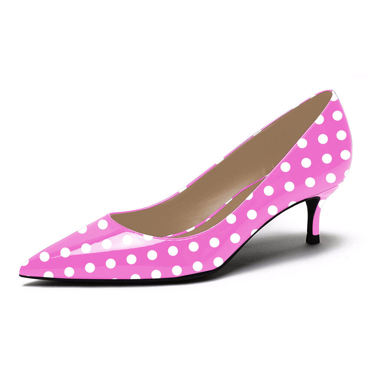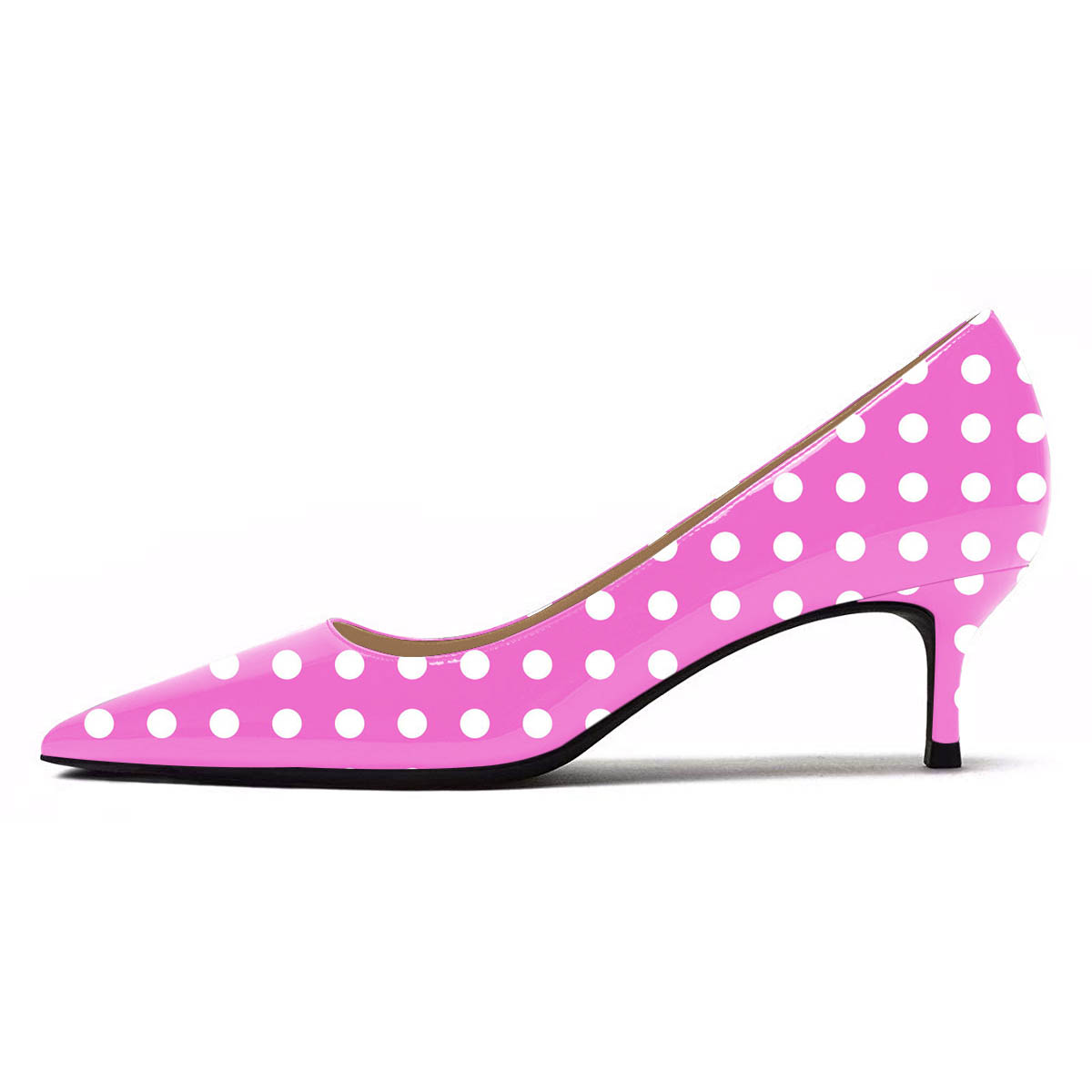 • Special Designs: The pointed-toe pump heels feature a chic polka dot and an elegant kitten heel.