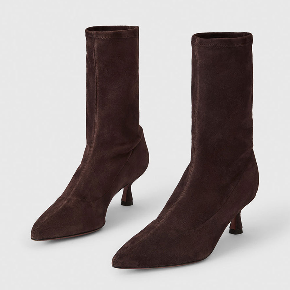 • Special Designs: The short boots feature a pointed toe with a kitten heel.