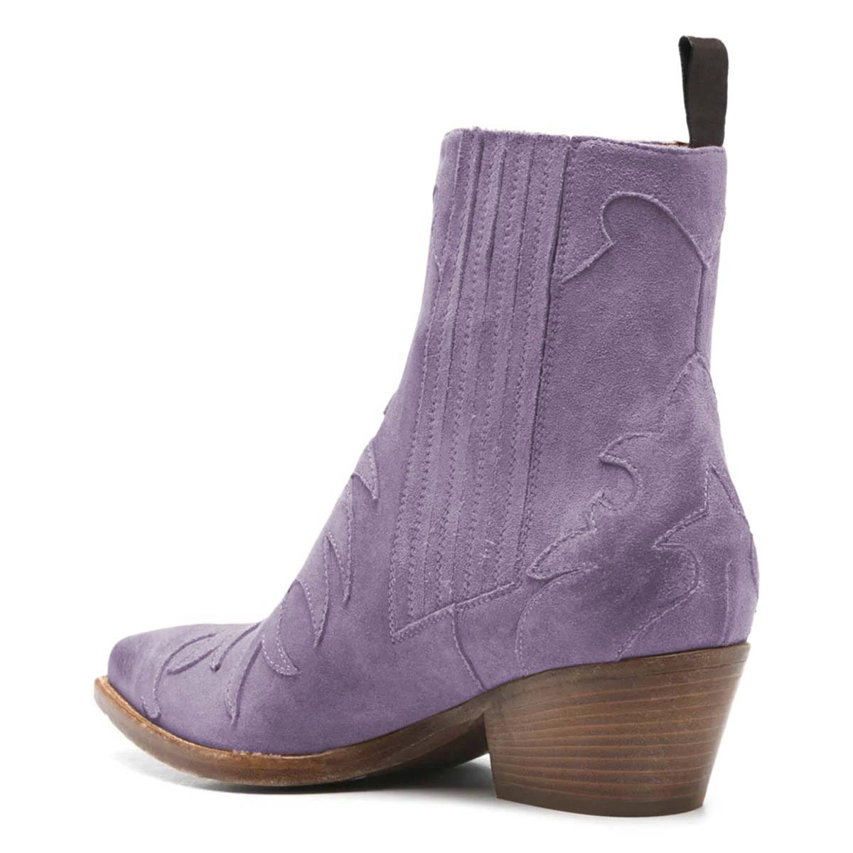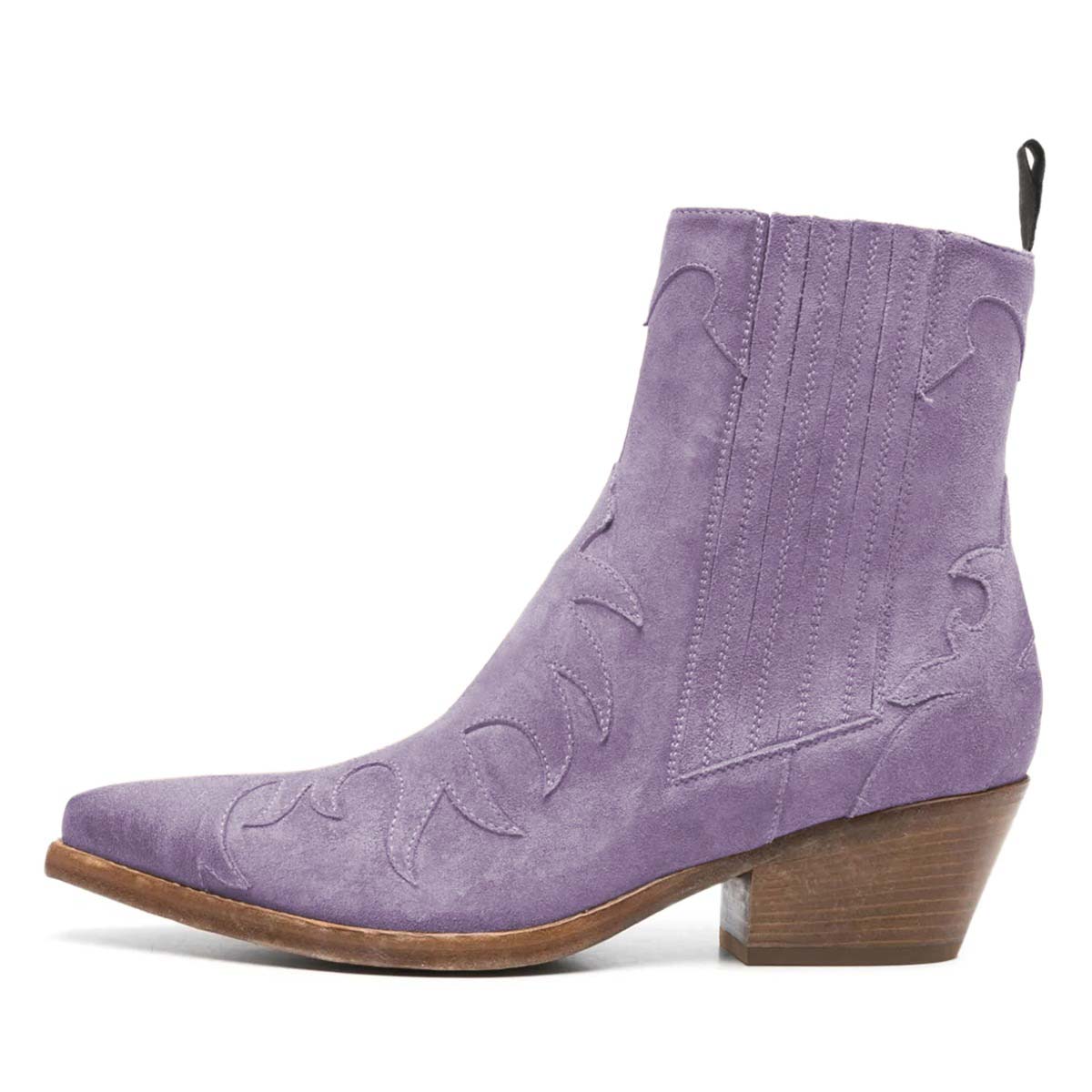 Purple Block Heel Snip Toe Patchwork Ankle Western Boots for Women