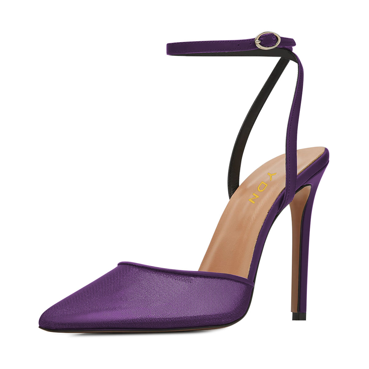 Purple Mesh & Satin Buckle Fastening Ankle Strappy Elegant Pumps