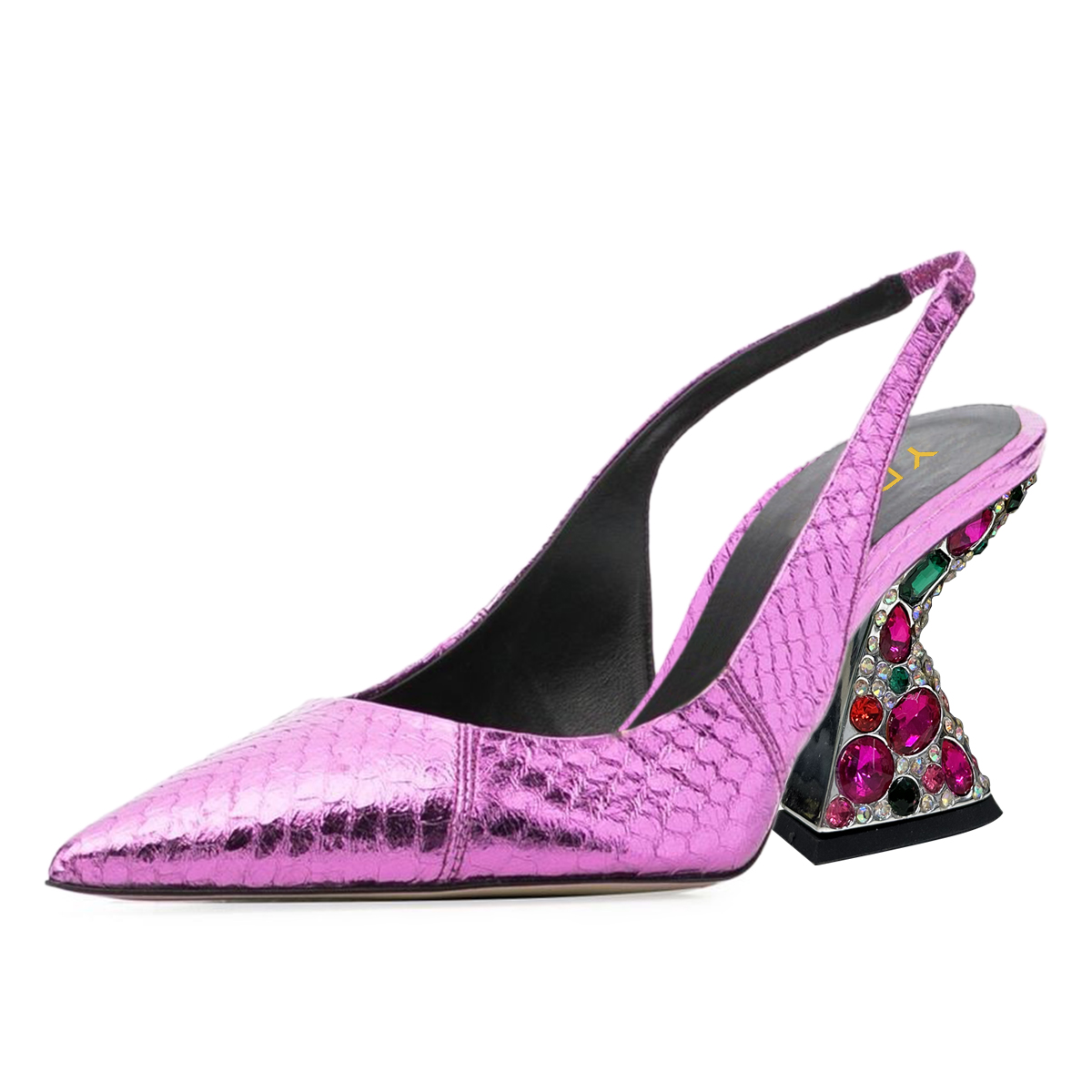 Purple Metallic Touch Croc-Embossed Pointed Slingback Party Pumps