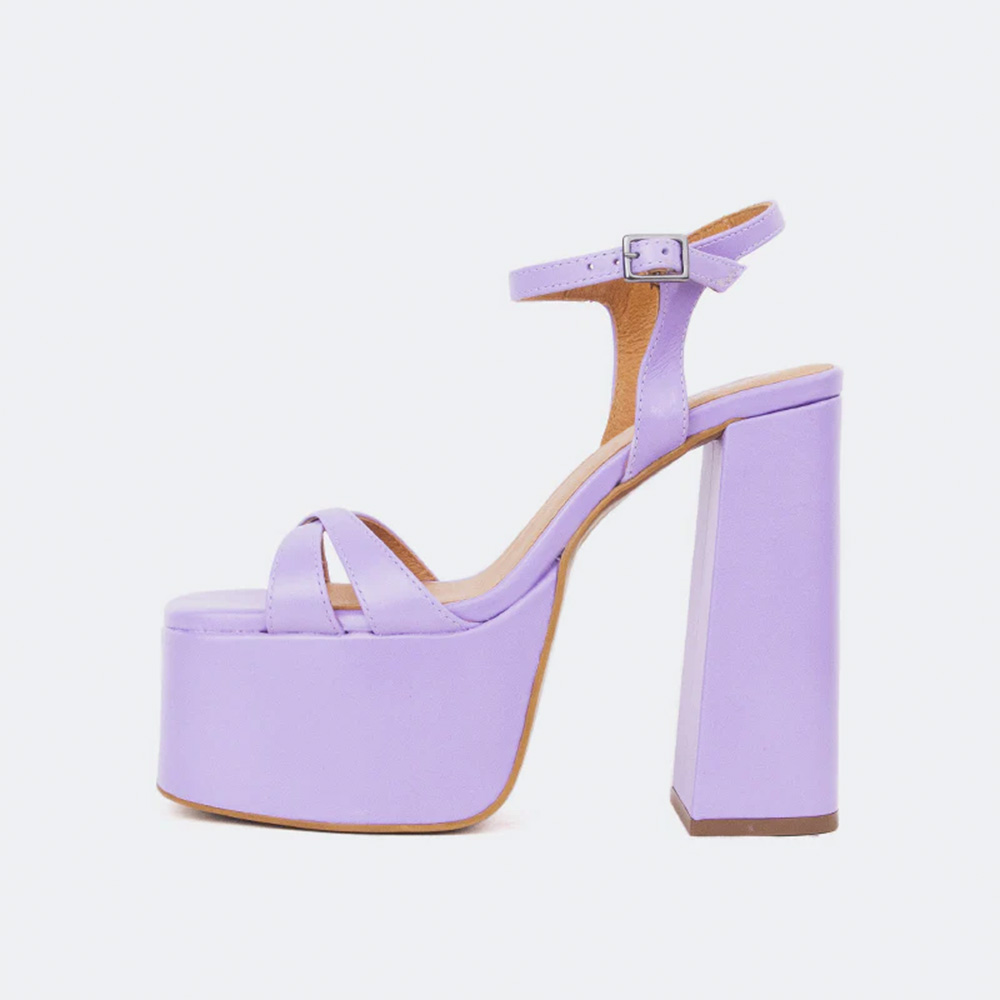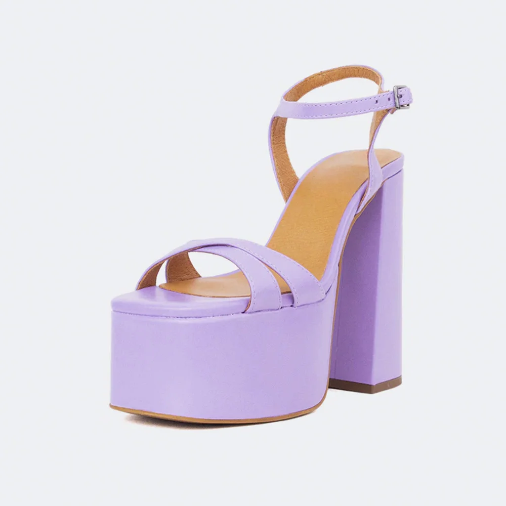 Purple Open Square Toe Chunky Heel Ankle Strap Platform Sandals