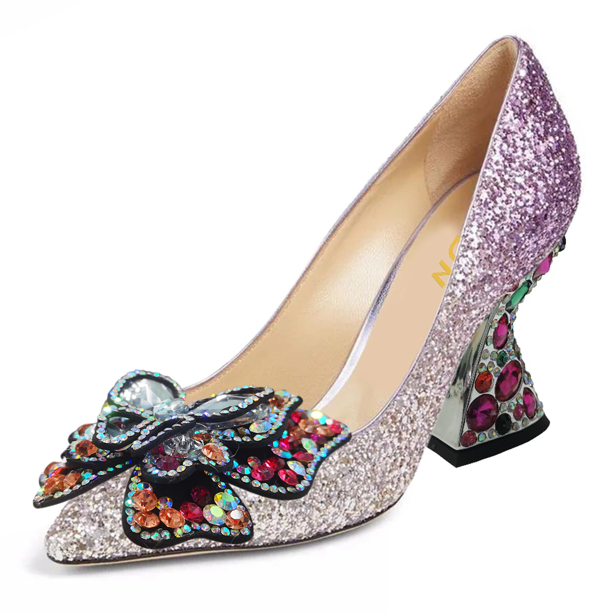 Purple Pointed Rhinestone Embellished Butterfly Sparkling Pumps