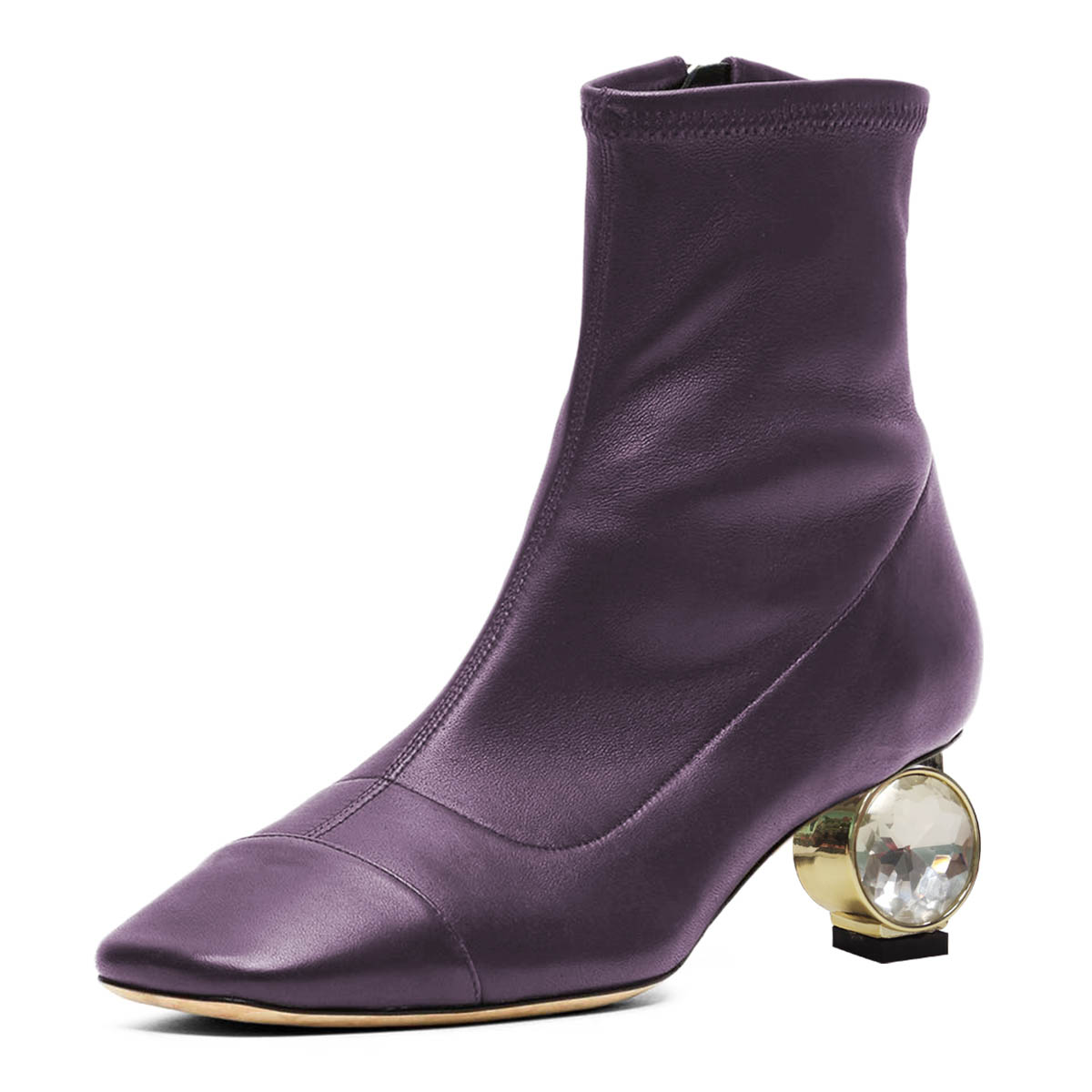 Purple Side Zipper Square Toe Crystal Decorative Heel Ankle Boots