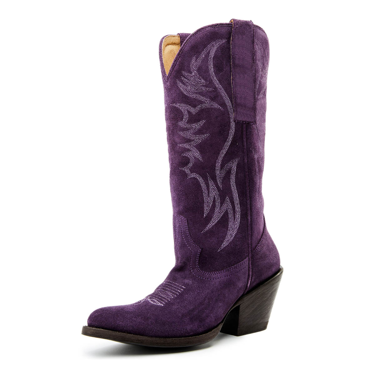 Purple Vegan Suede Embroidered Pointed Toe Western Boots for Women
