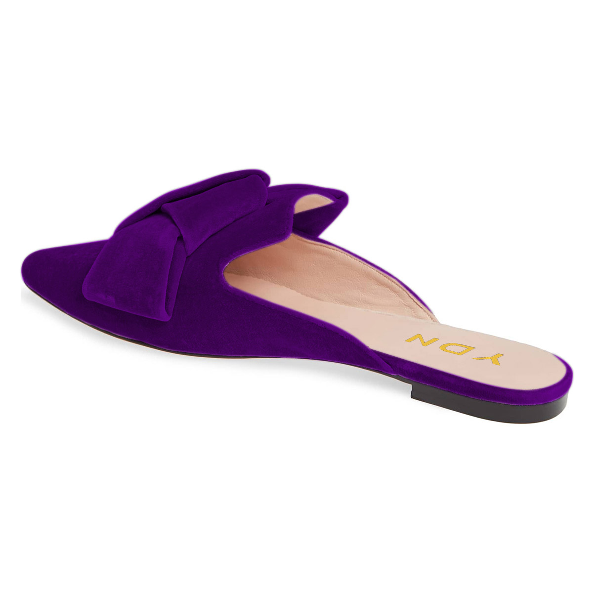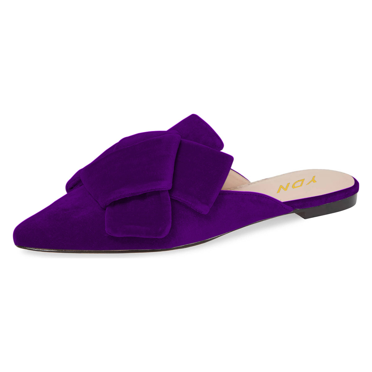 Special Designs: The purple velvet flat mule shoes feature a pointed toe and a cute knot design.