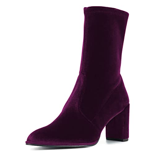 Purple Velvet Pointed Toe Pull-On Sexy Ankle Boots for Women