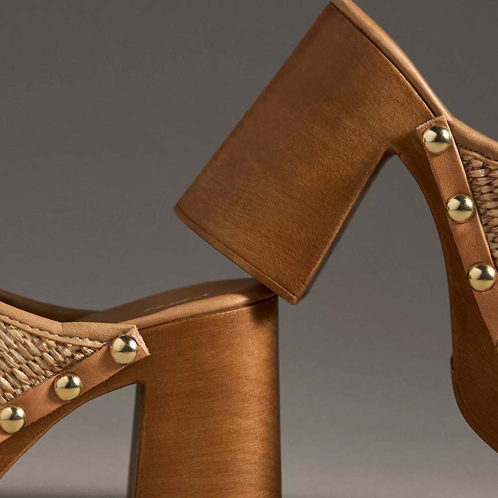 Special Designs: The nude mules feature a studded decorative and chunky heel design with platform.