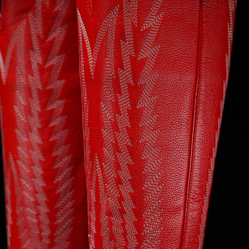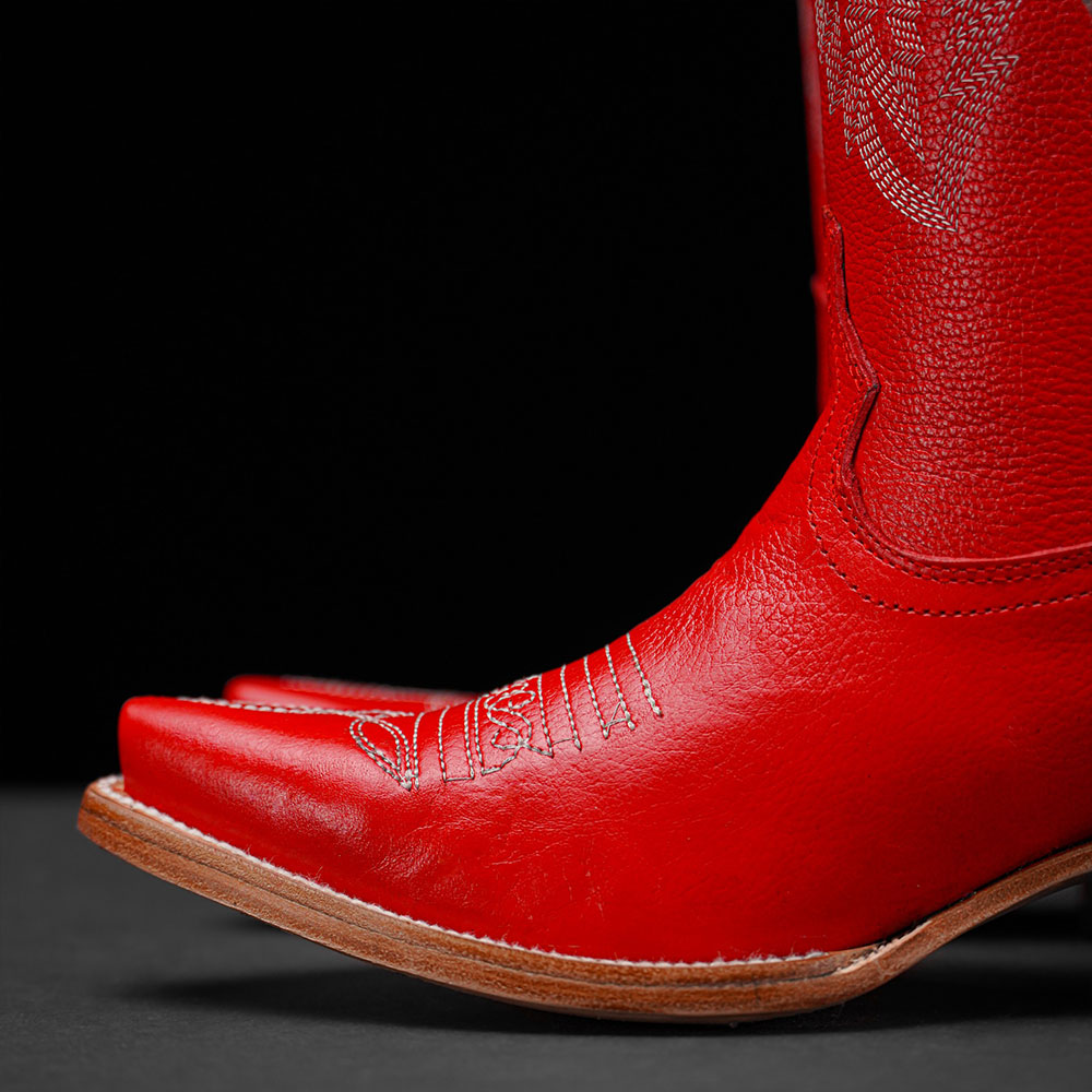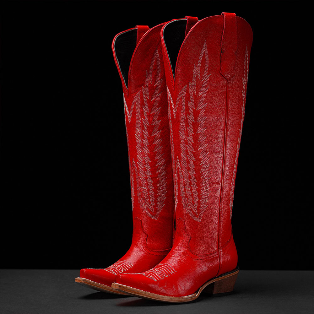 Red Embroidered Block Heel Snip Toe Tall Cowgirl Boots for Women