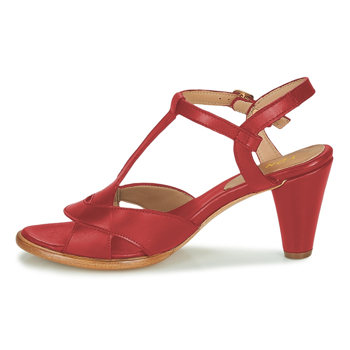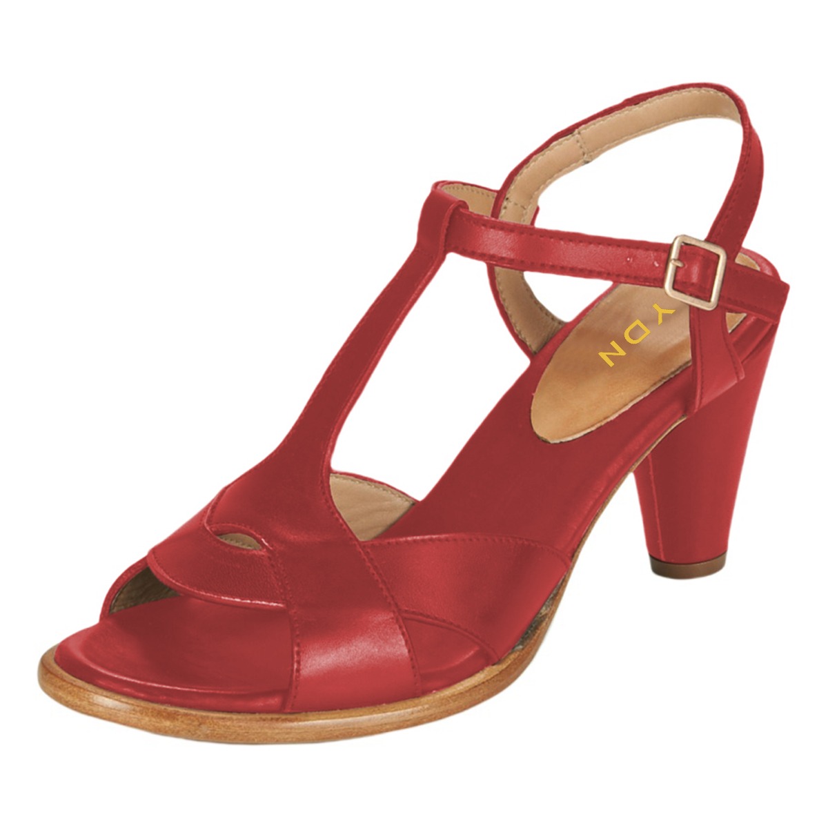 Red Open Round Toe Buckled T-Strap Simple Women's Heel Sandals