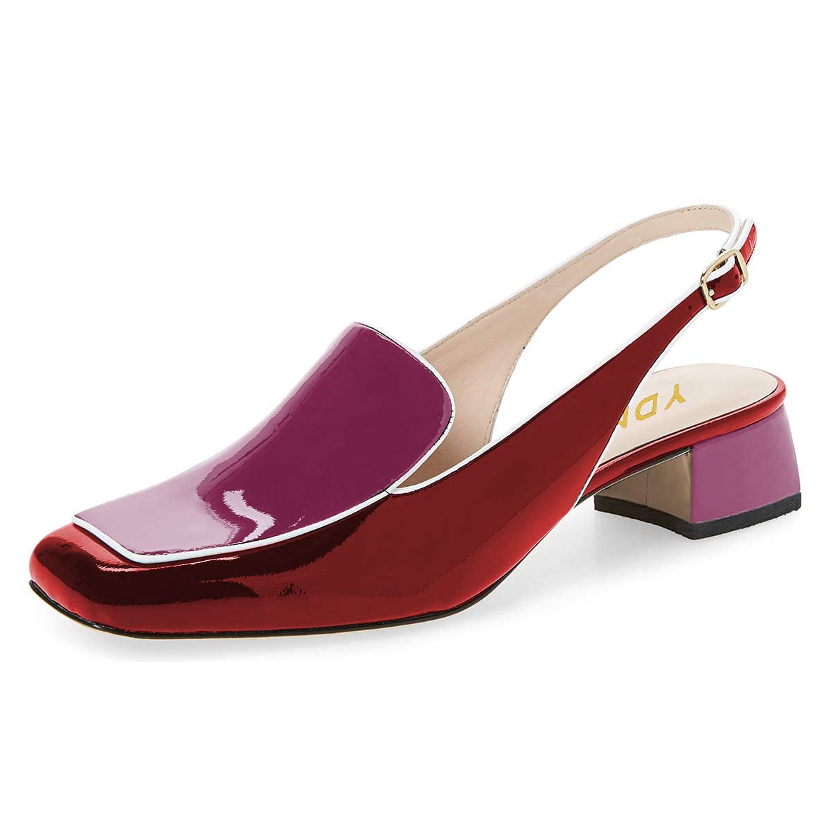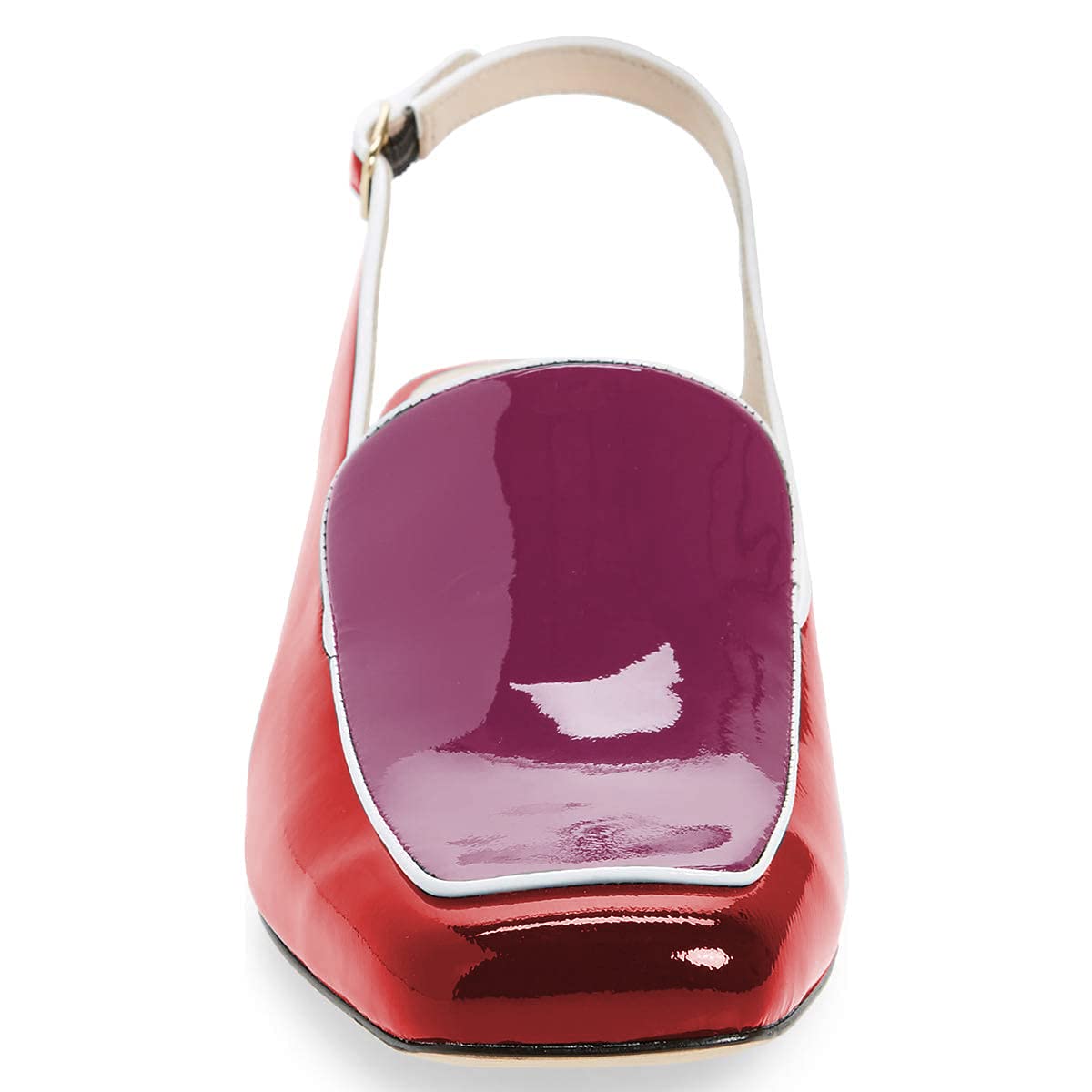 Red & Purple Square Toe Chunky Heel Slingback Women's Loafers