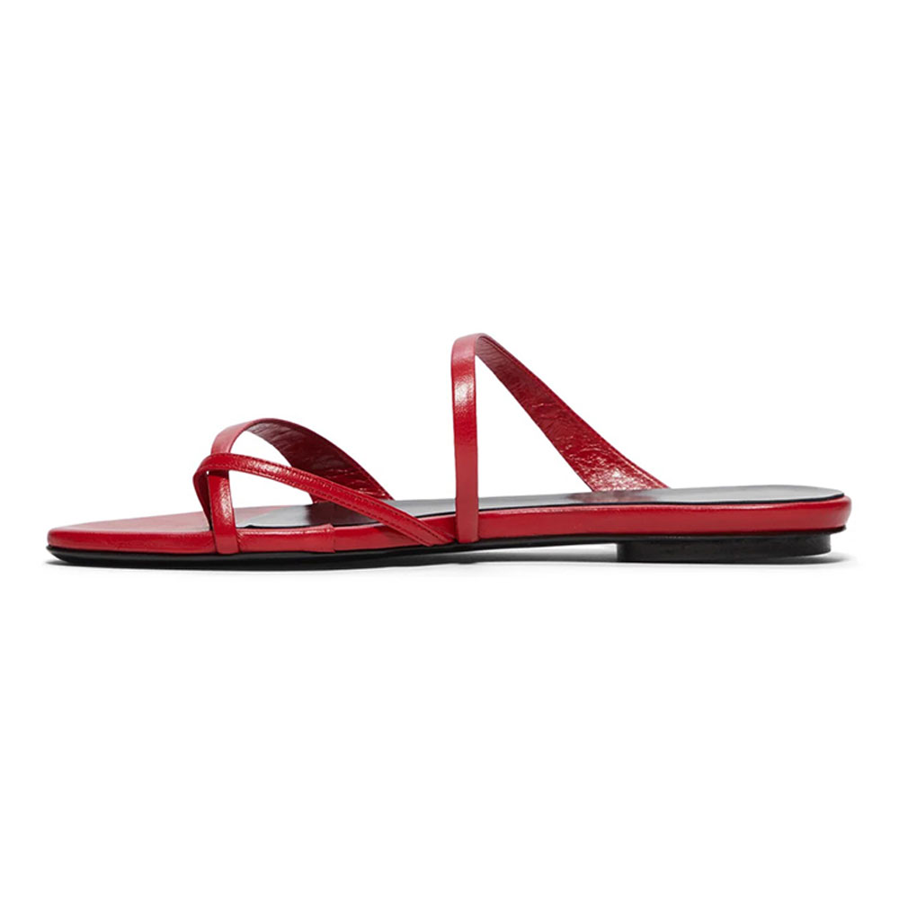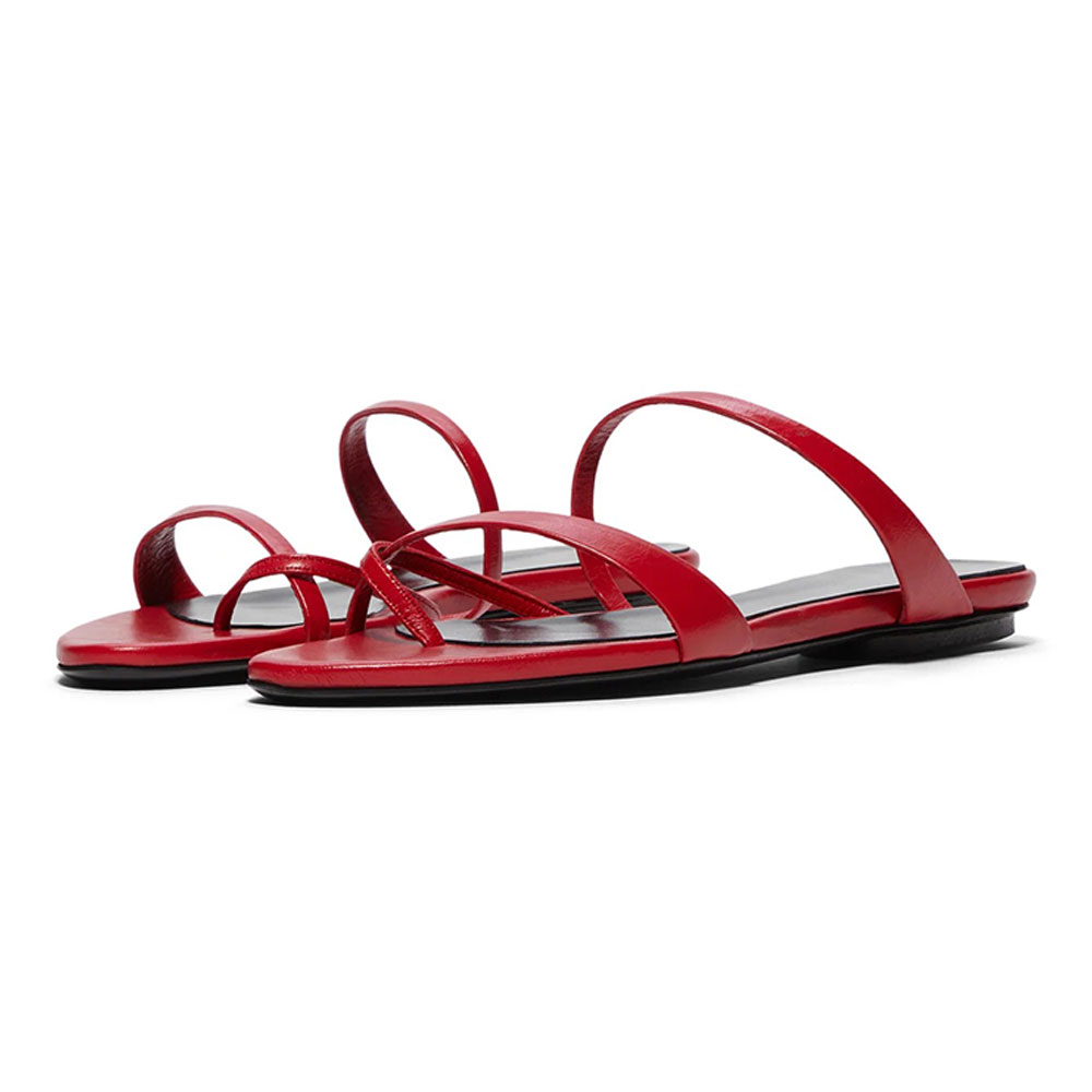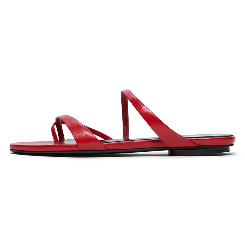 Red Slip On Strappy Flip Flop Flats Open Toe Women's Mules Shoes