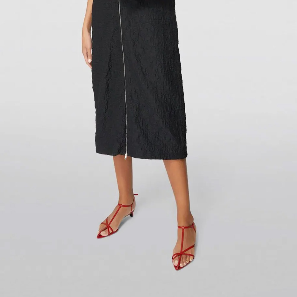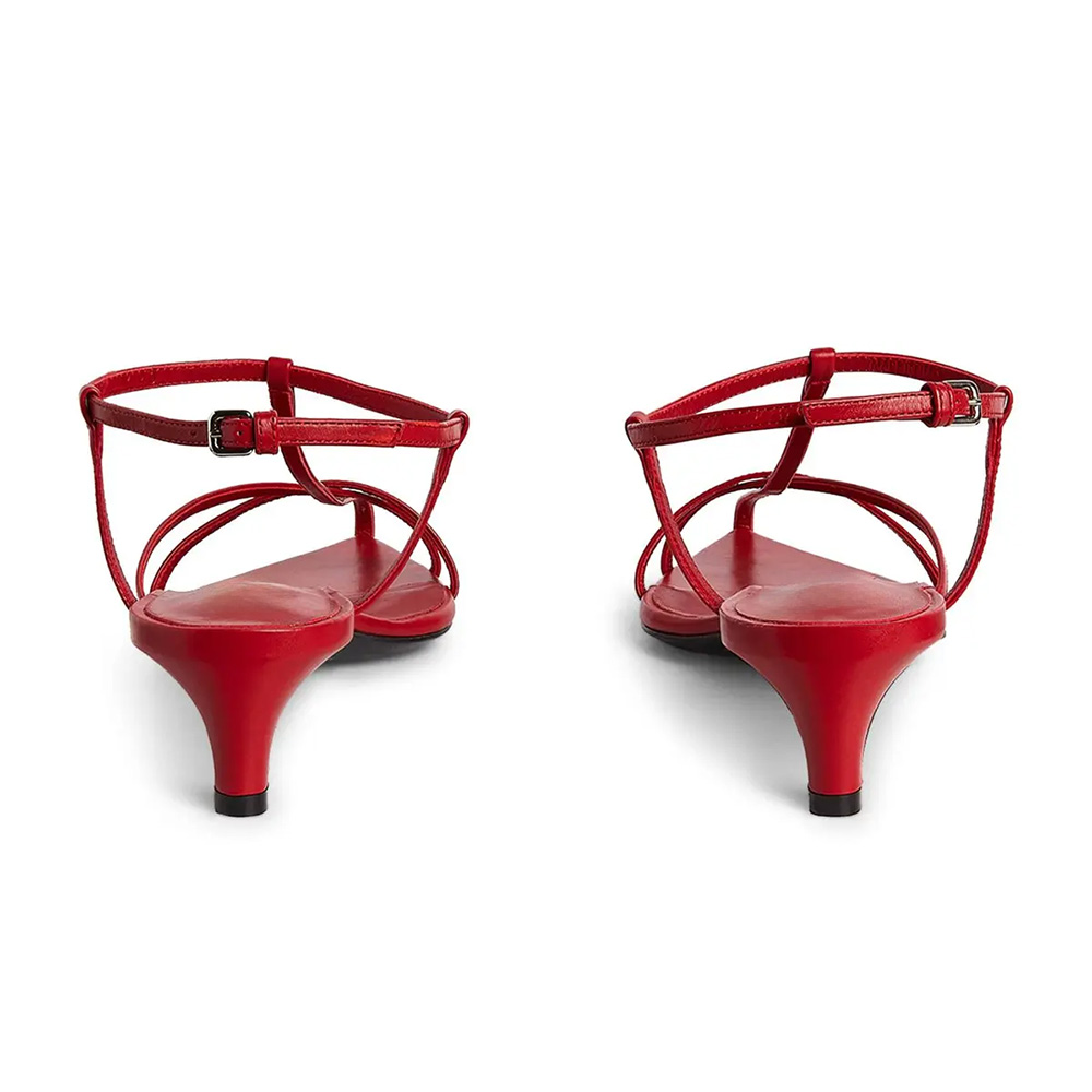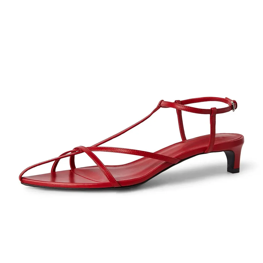 Red Vegan Leather T-Strap Open Toe Simple Women's Heel Sandals